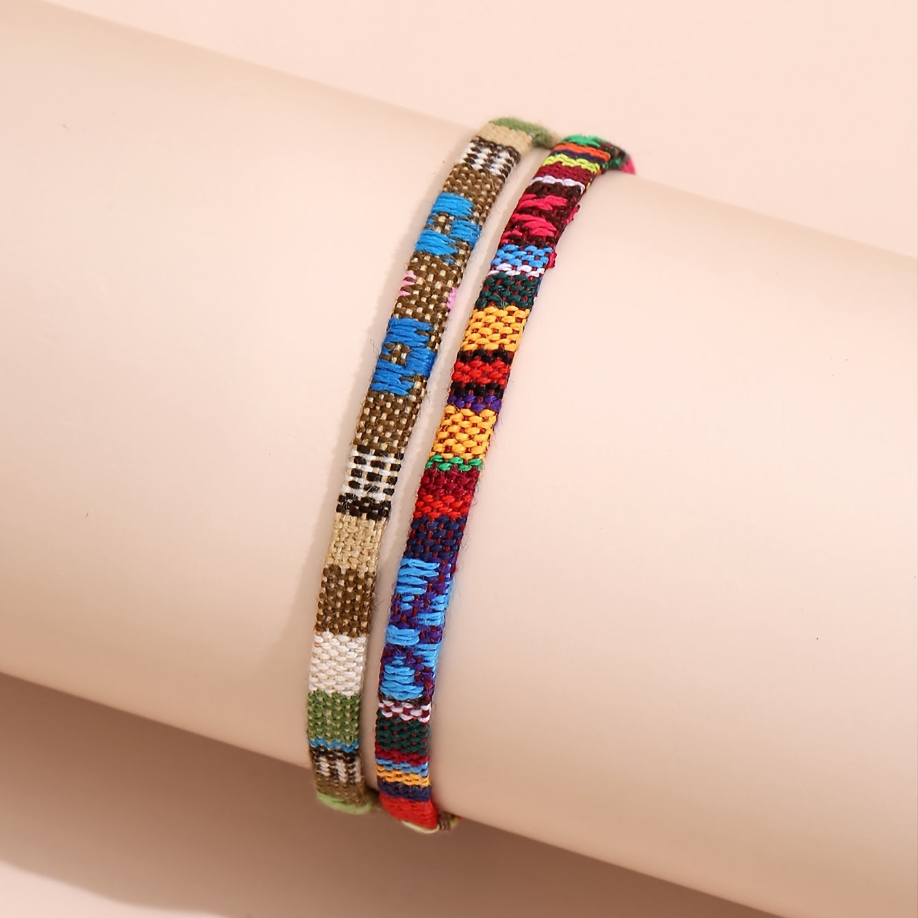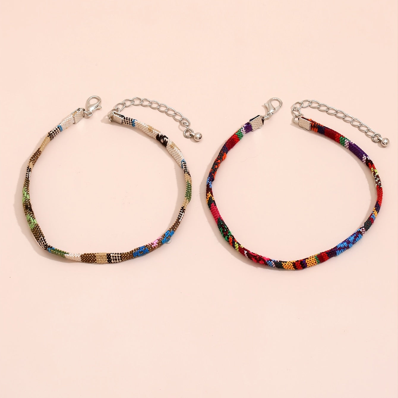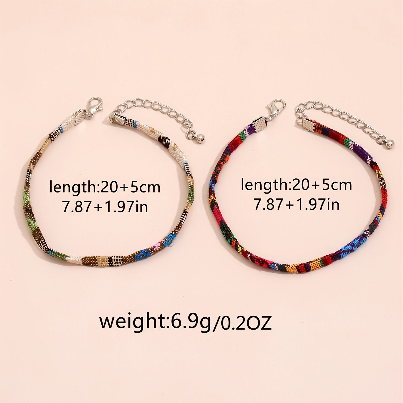 This woven ankle bracelet set features vibrant rainbow colors and adjustable design, perfect for adding a bohemian touch to your foot jewelry collection.