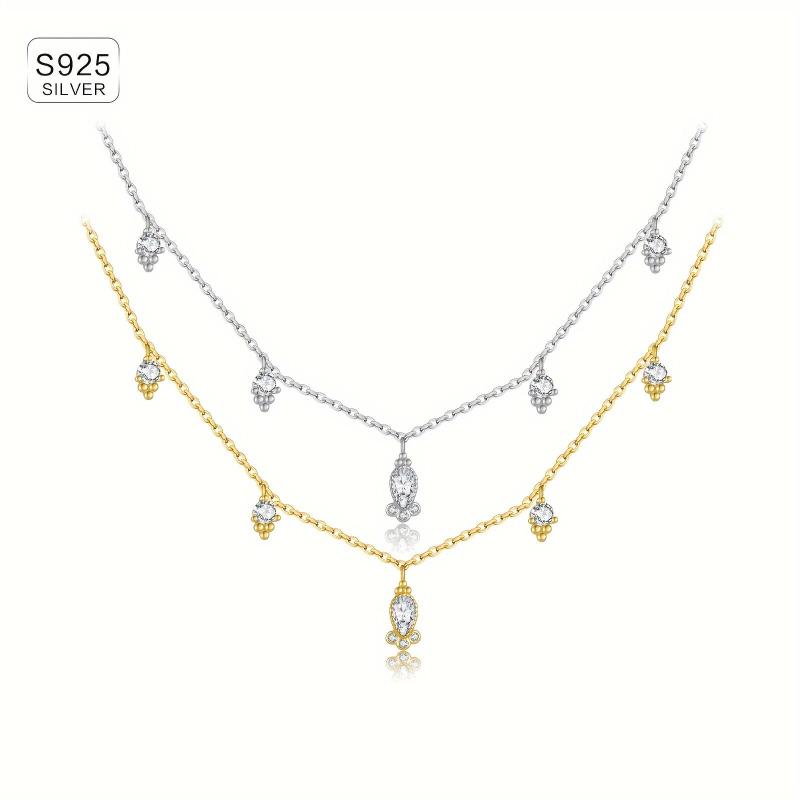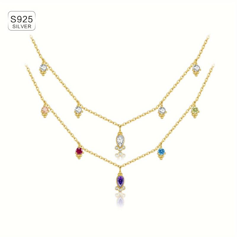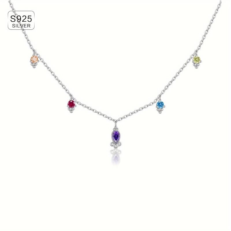 This dazzling tassel necklace features colorful cubic zirconia embellishments, adding a touch of sparkle to your casual attire. Made of 925 silver, this unique collar chain is a perfect gift for any occasion.