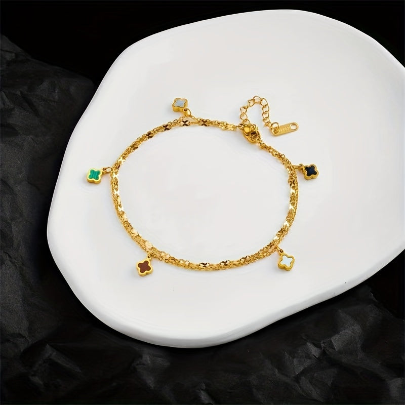 Add a touch of charm to your ankles with this colorful four leaf clover anklet. It's a perfect accessory for women who love unique and stylish jewelry.