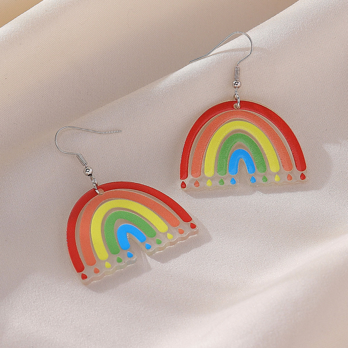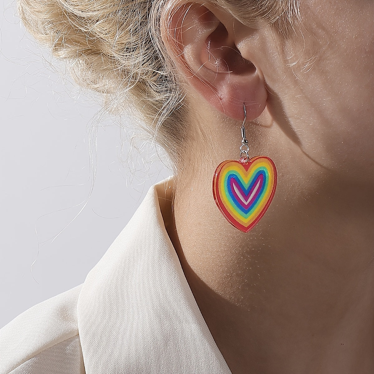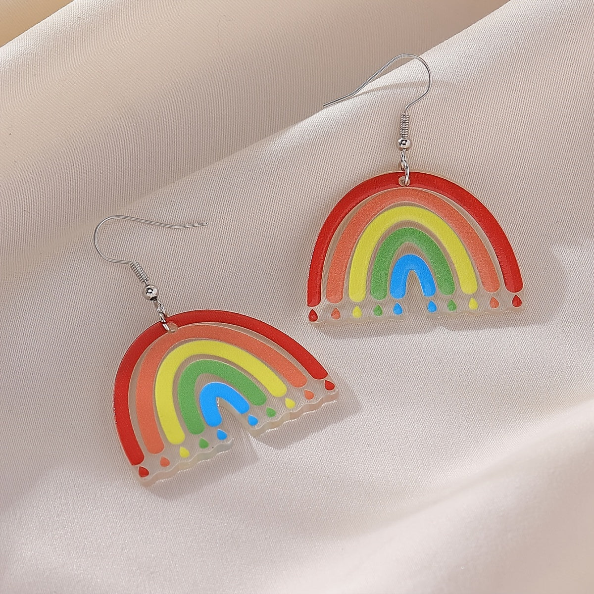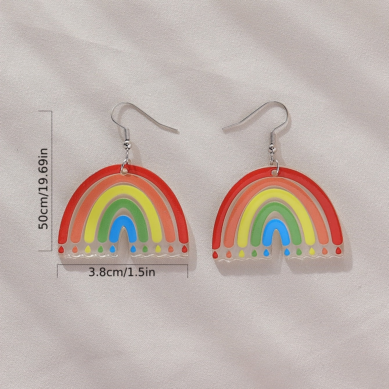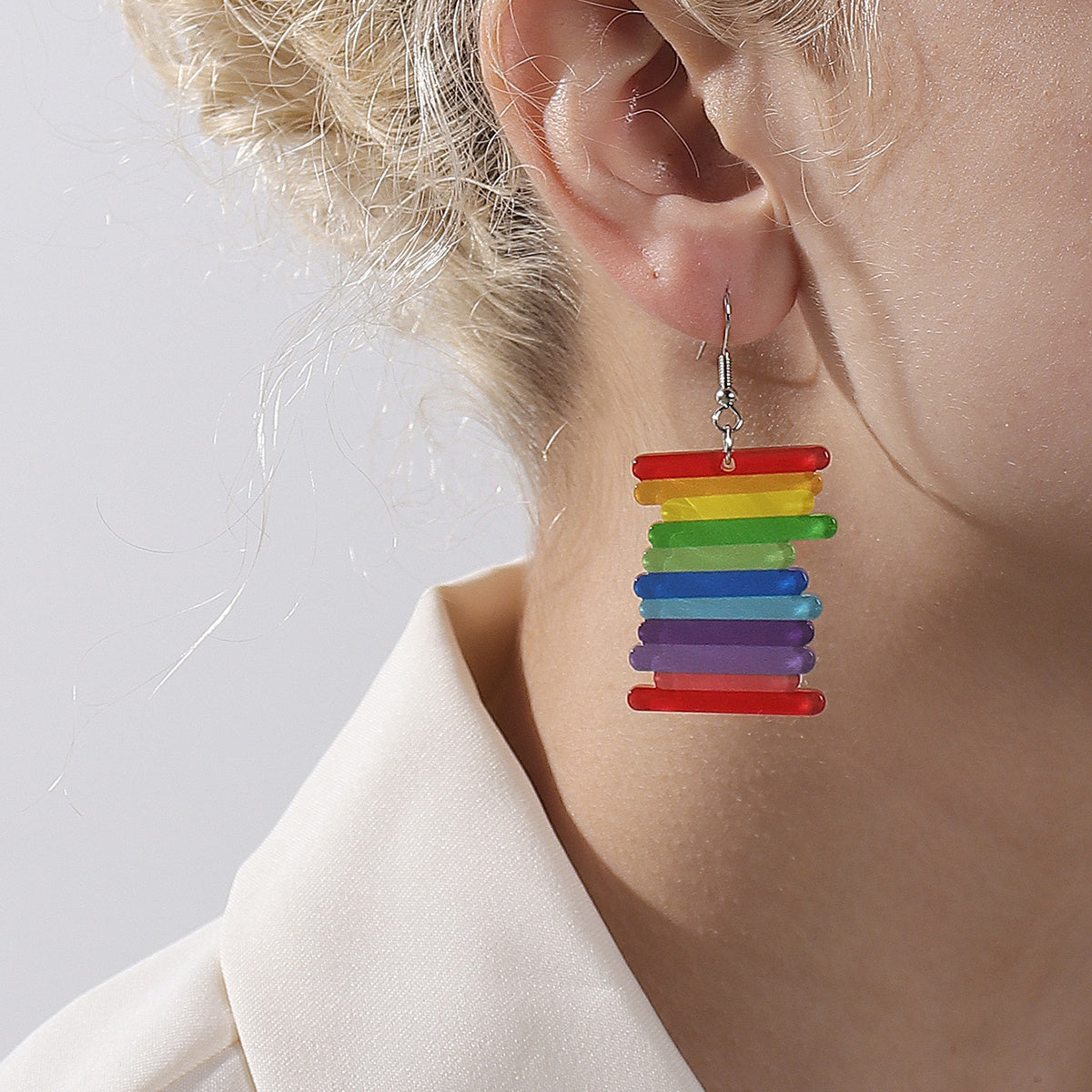 Add a pop of color to your outfit with these rainbow geometric earrings. Perfect for women, girls, men, and couples.