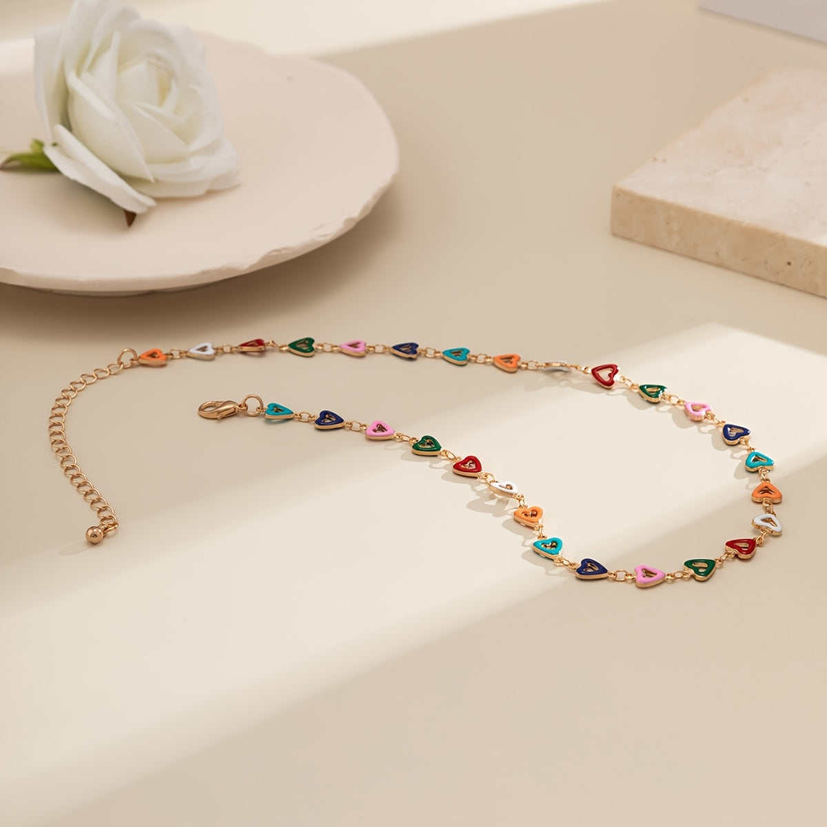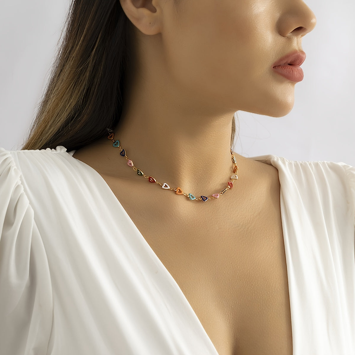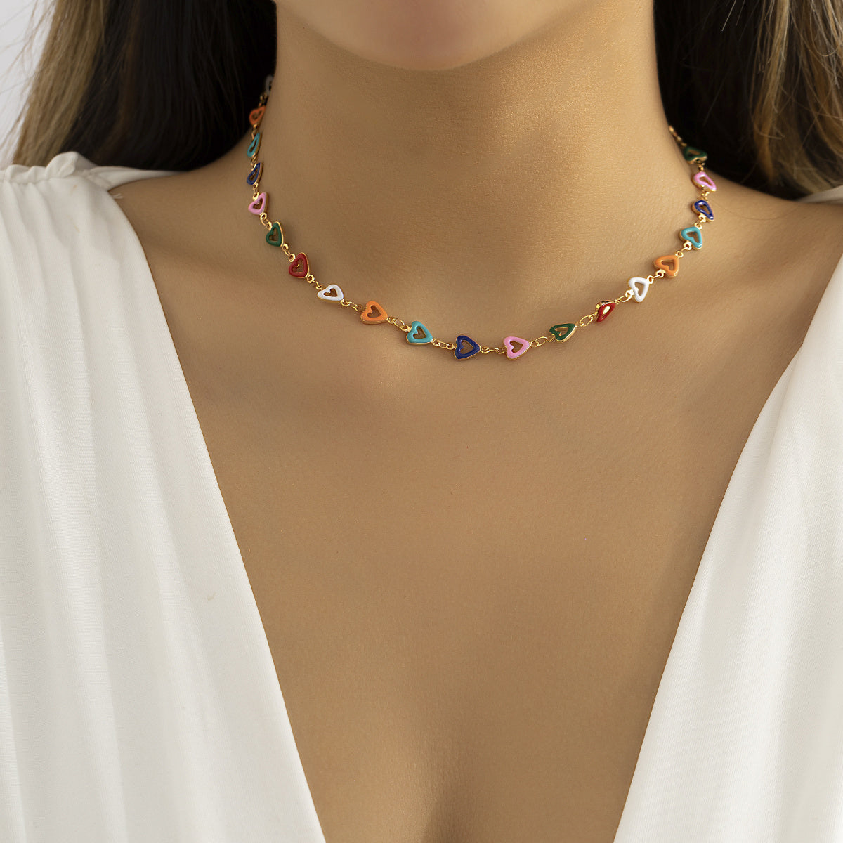 Make a stylish statement with this boho choker necklace featuring colorful hollow heart beads. Perfect for summer beach wear or as a special jewelry gift.