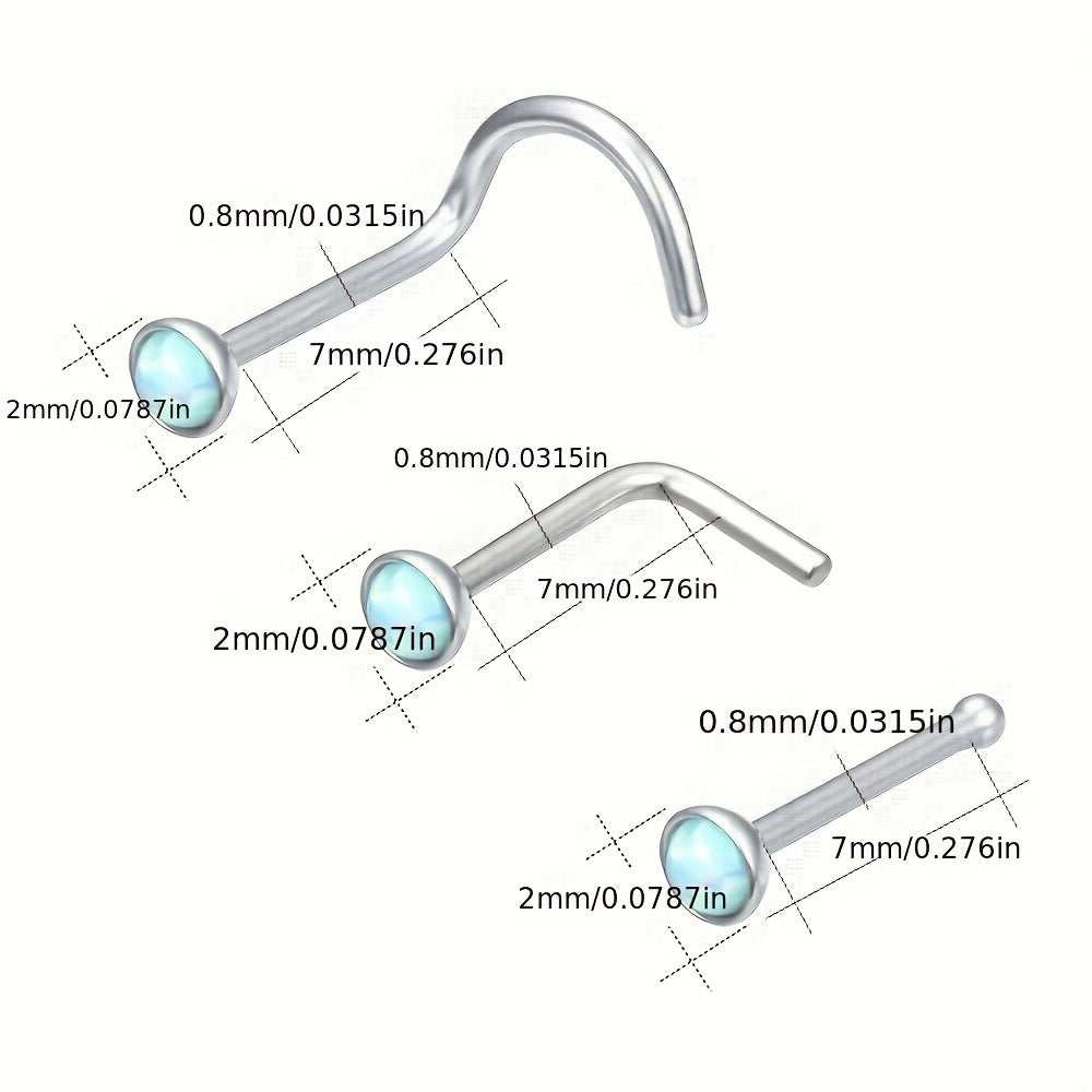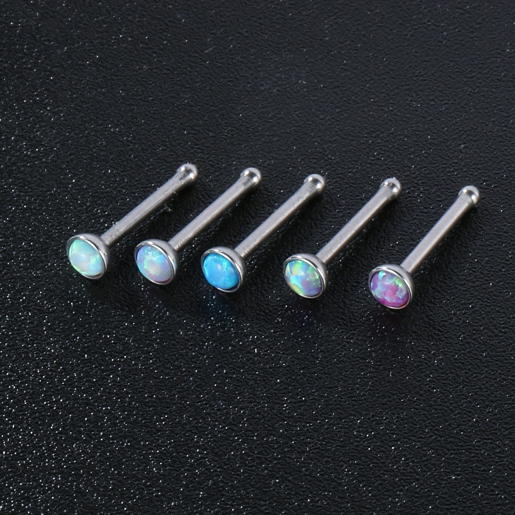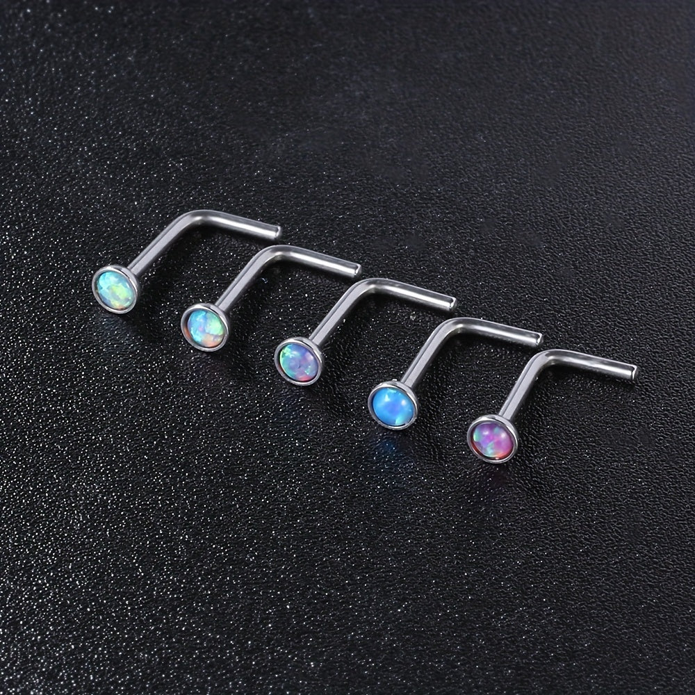 This eye-catching nose ring features a colorful laser inlaid opal design, perfect for adding a touch of sparkle to your look. Made of high-quality materials, this nose stud is ideal for nostril piercings.