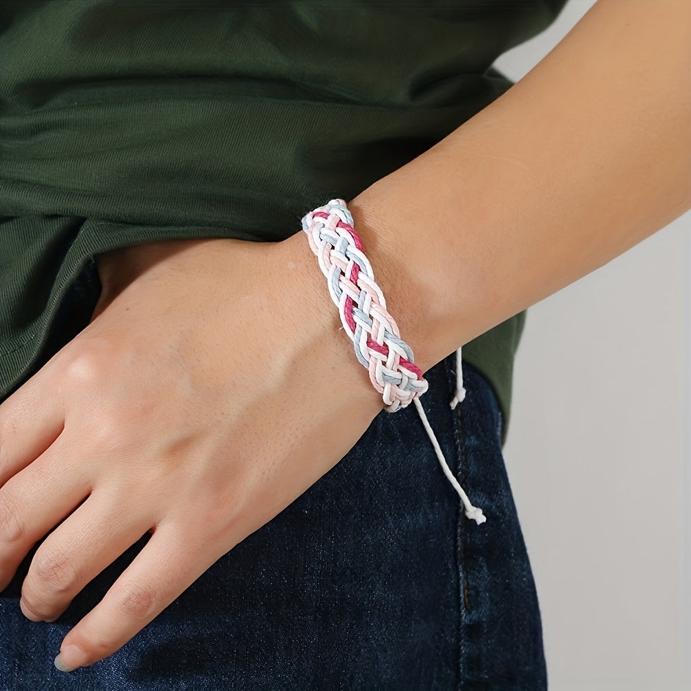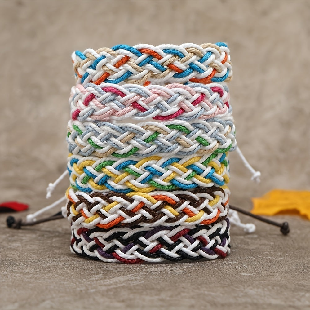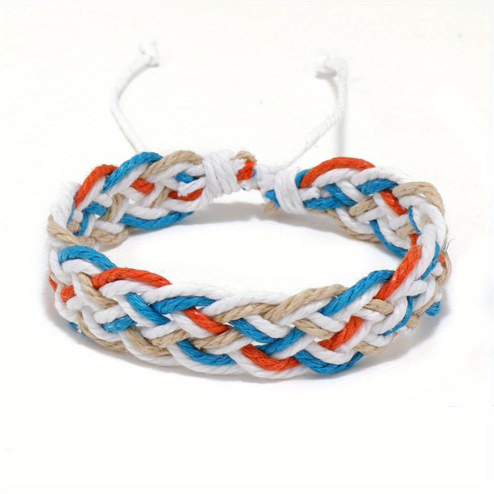 Elevate your style with this vibrant rope woven bracelet featuring a retro ethnic design inspired by Mexican culture. Perfect for adding a bohemian touch to your look.