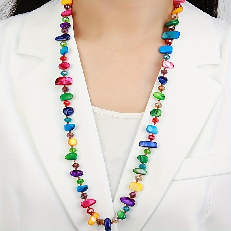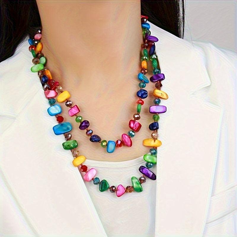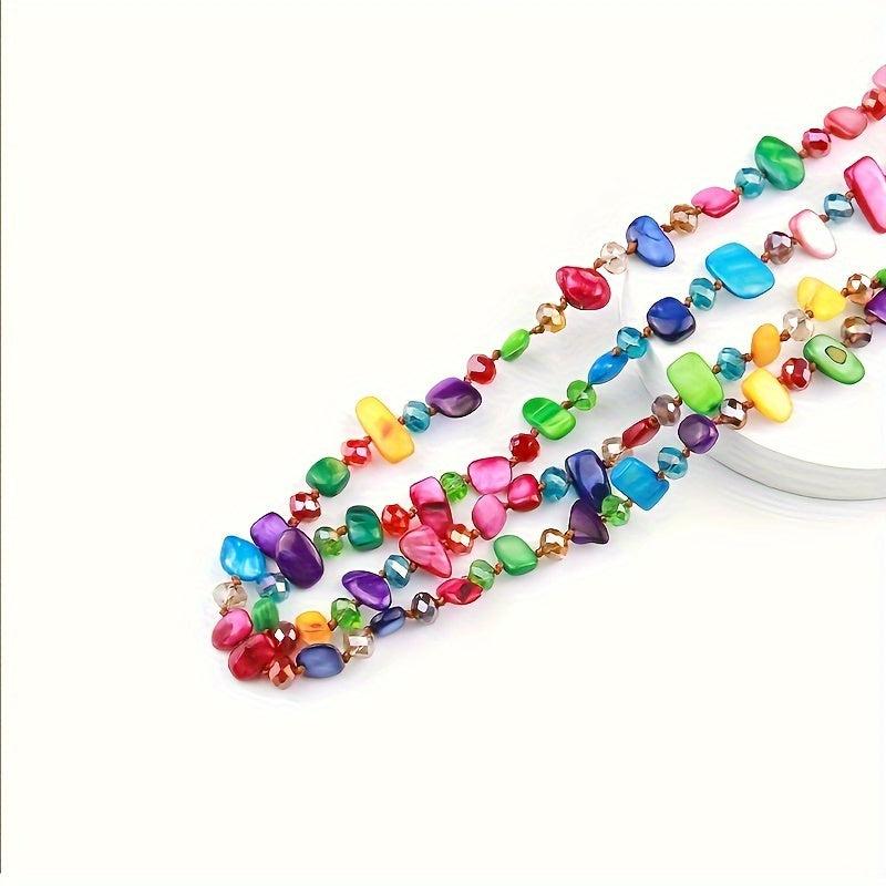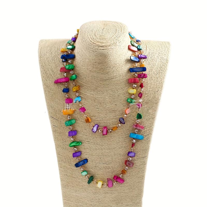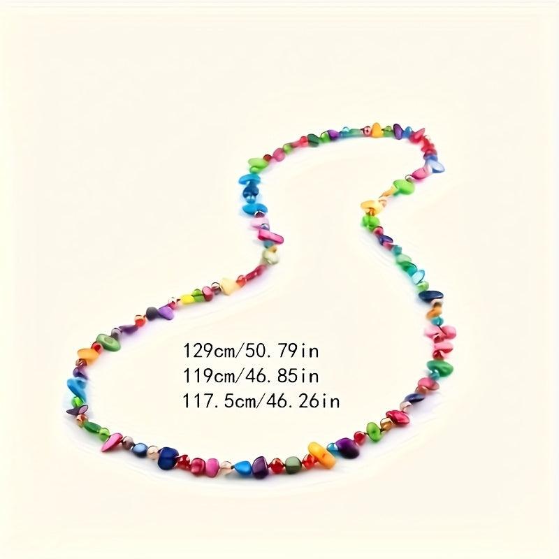 Elevate your style with this eye-catching shell shaped bead long necklace. Featuring a mix of multicolor layered beads, this lightweight and durable jewelry is perfect for daily wear and parties all season long.