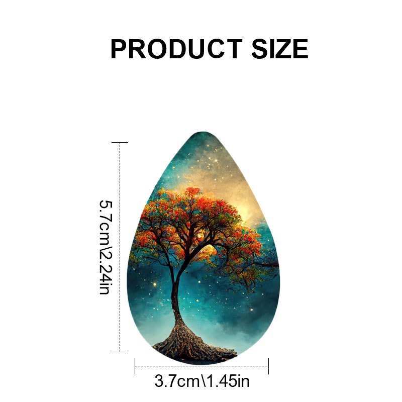 These stylish teardrop dangle earrings feature a colorful tree print design, perfect for adding a bohemian touch to your look. Made of high-quality PU leather, these earrings are a delicate gift for women and girls.