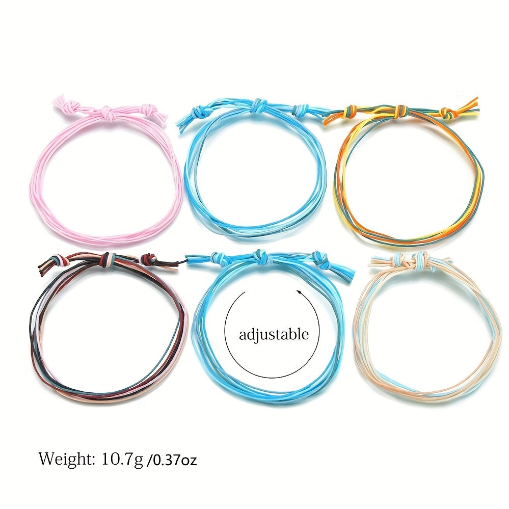 Enjoy the summer with this waterproof surfing wax rope anklet set that adds a pop of color to your beach look. Adjustable design for a comfortable fit.