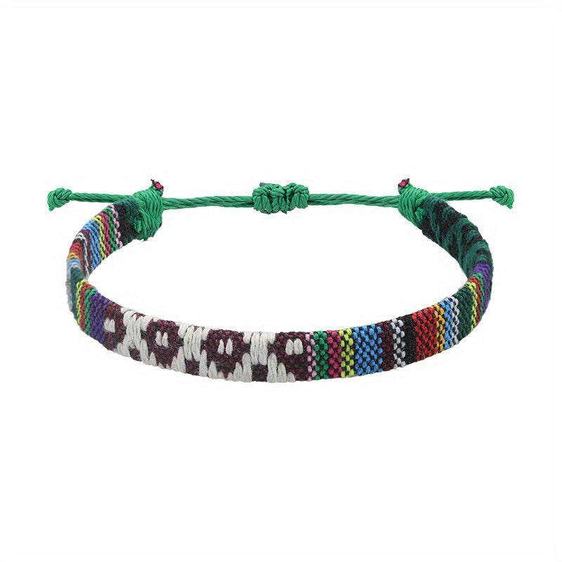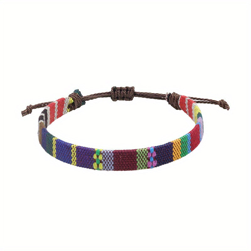 This boho-style anklet features colorful wax thread braiding for a fun and vibrant look. It is adjustable to fit most sizes and perfect for adding a touch of Mexican-inspired friendship style to your outfit.
