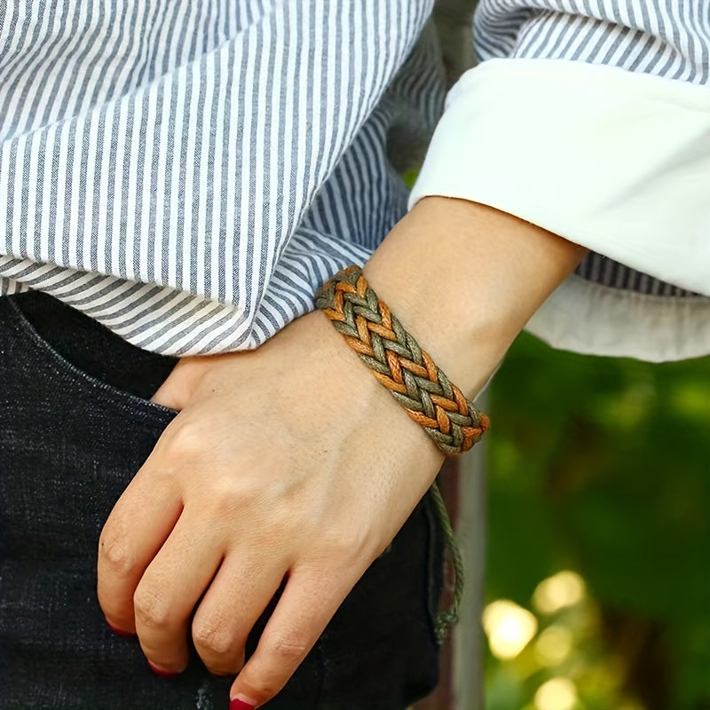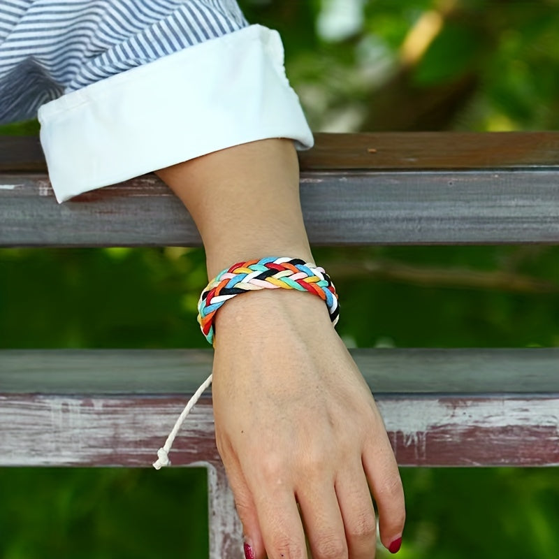Add a touch of ethnic style to your look with this colorful hand-knit bracelet. Perfect for casual outings, holidays, summer days, and beach adventures.