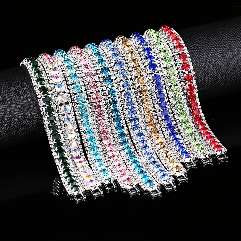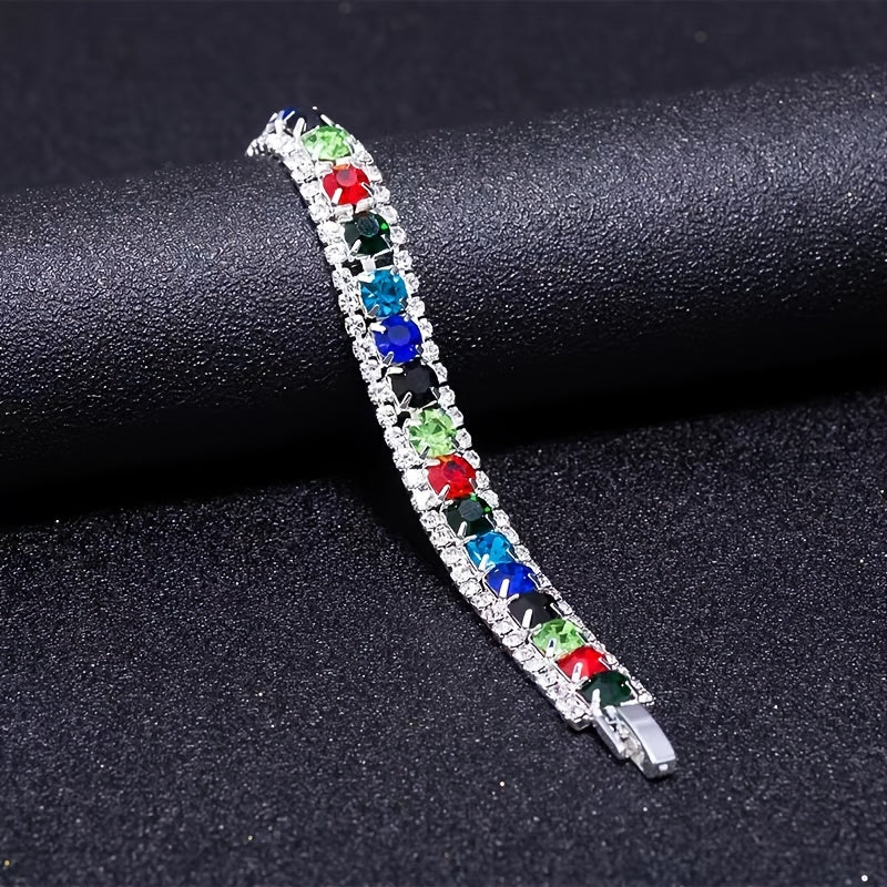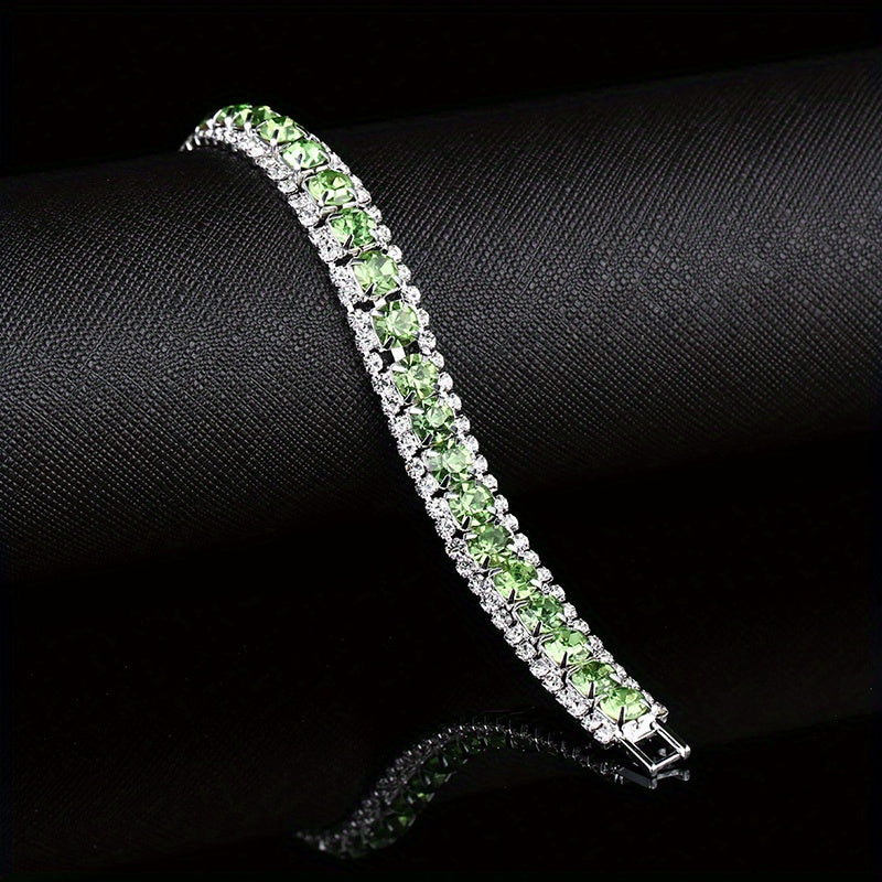 Add a touch of elegance with this three-row zircon tennis bracelet that features a vibrant array of birthstone colors. Perfect for everyday wear or special occasions.