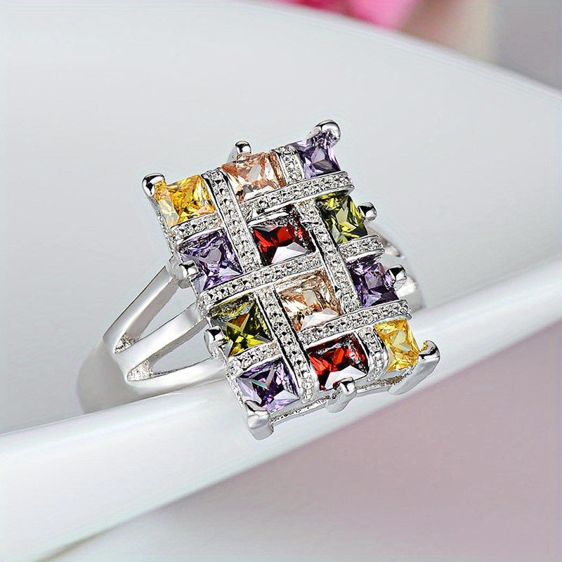 This inlaid zircon finger ring is a dazzling accessory for women, perfect for weddings and special occasions.