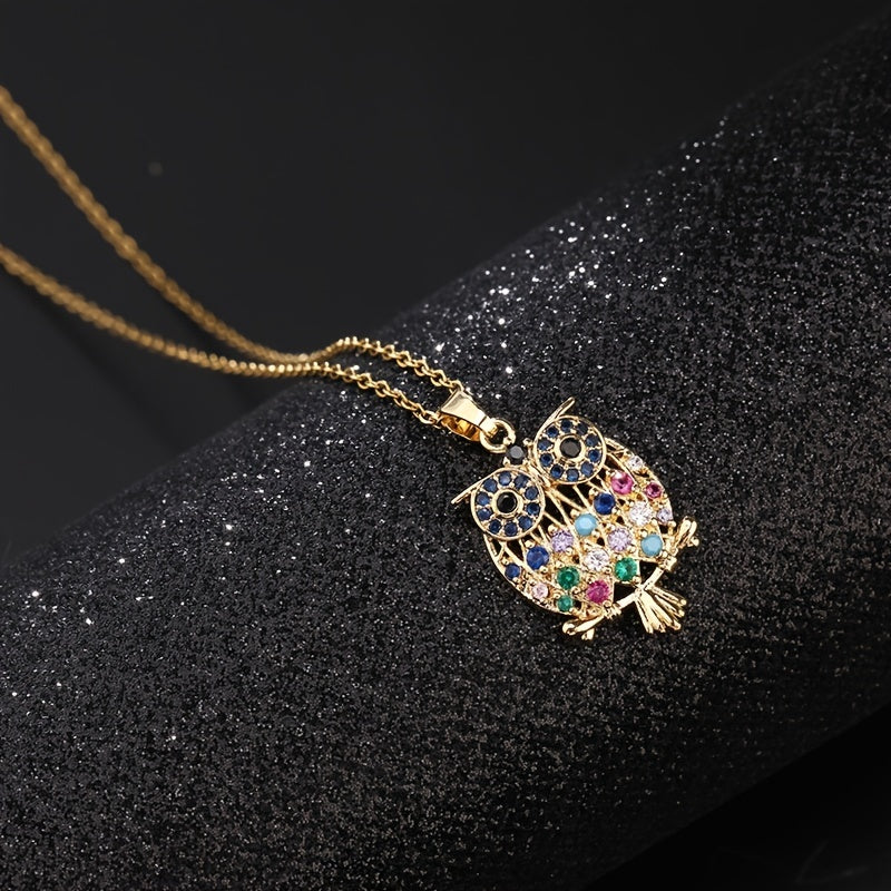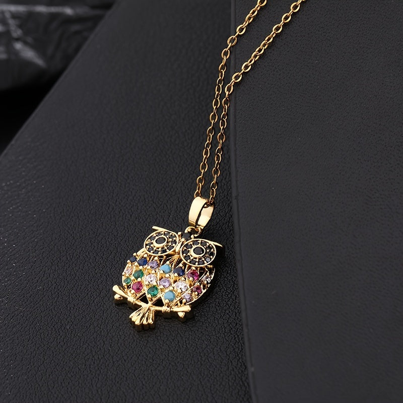 This owl shape pendant necklace features colorful zircon stones that add a touch of elegance. It is a delicate and versatile accessory with an animal theme that looks stunning on your clavicle.