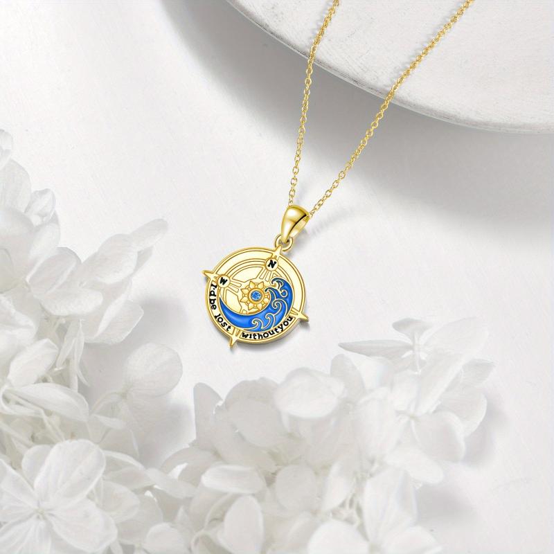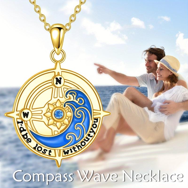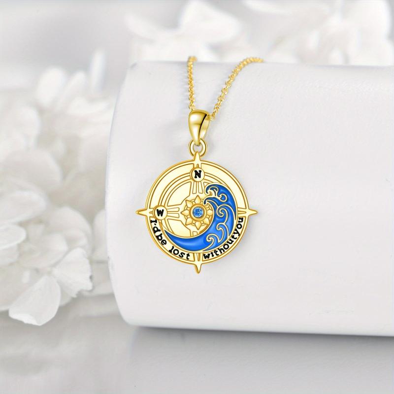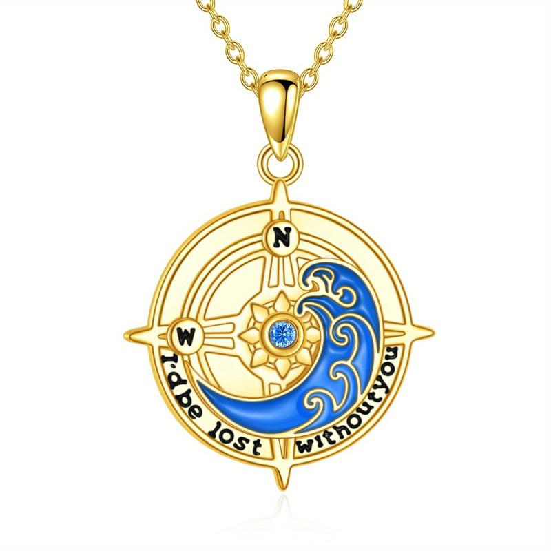 This stunning compass necklace features a sterling silver chain with a cubic zirconia pendant plated in gold, perfect for both women and men.
