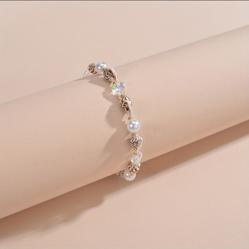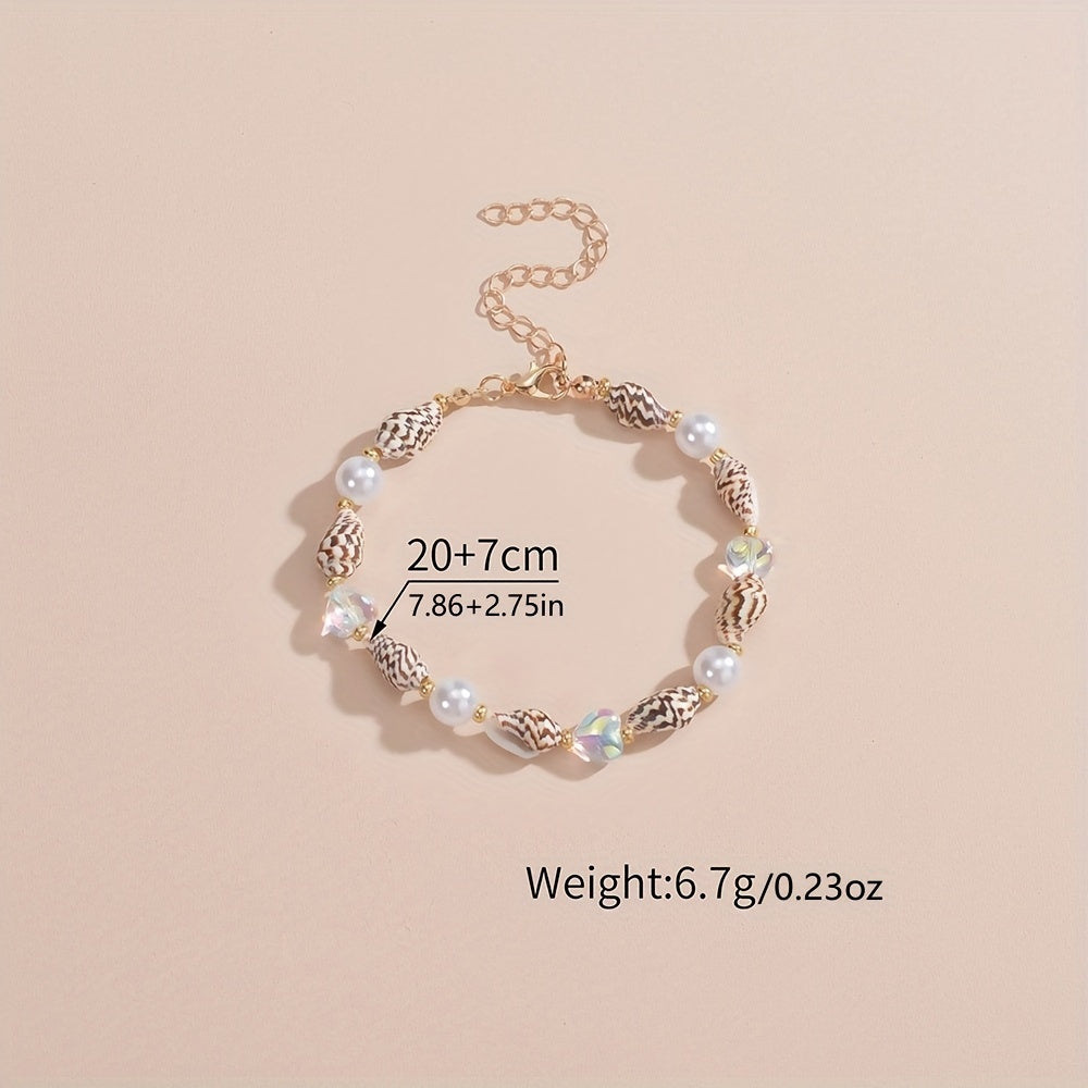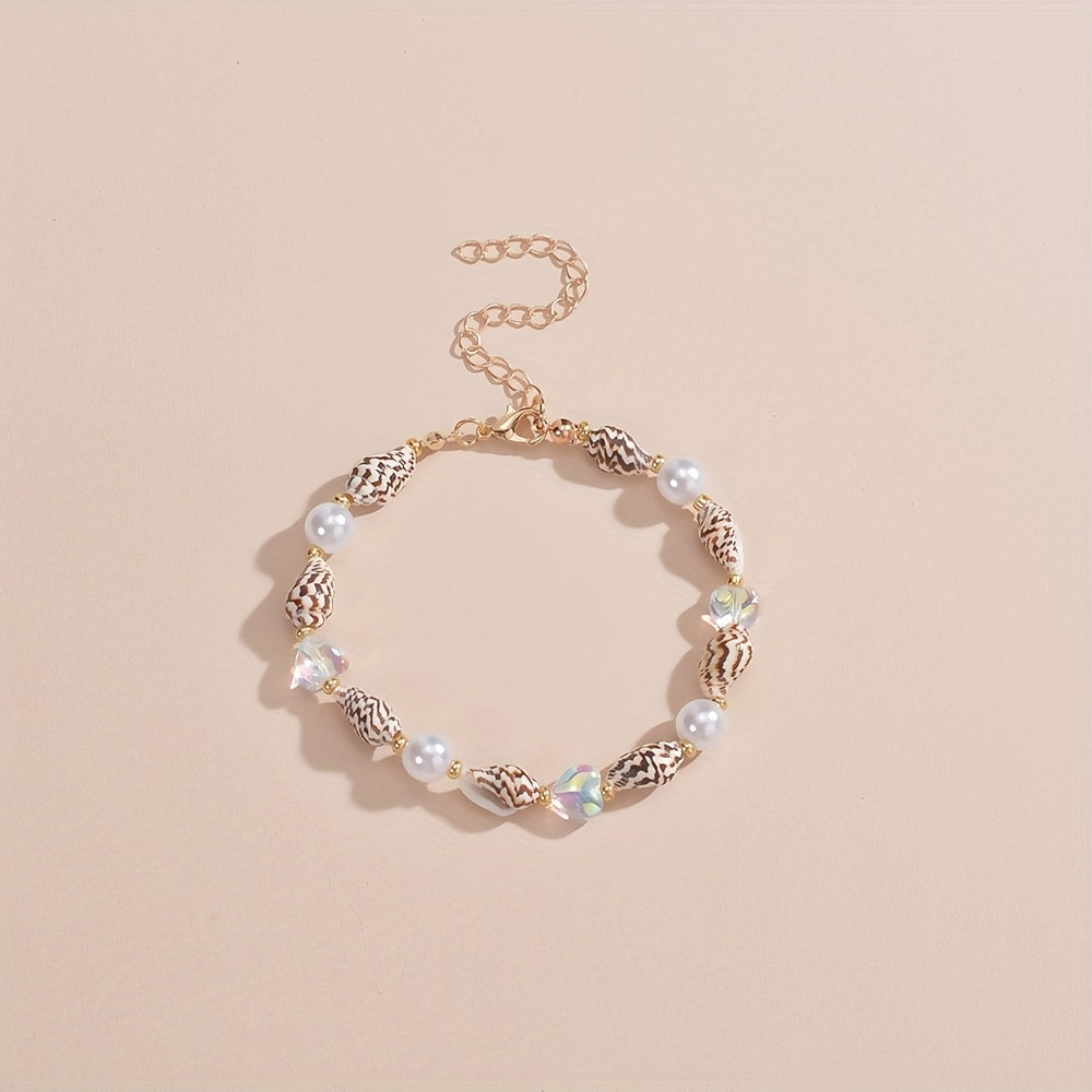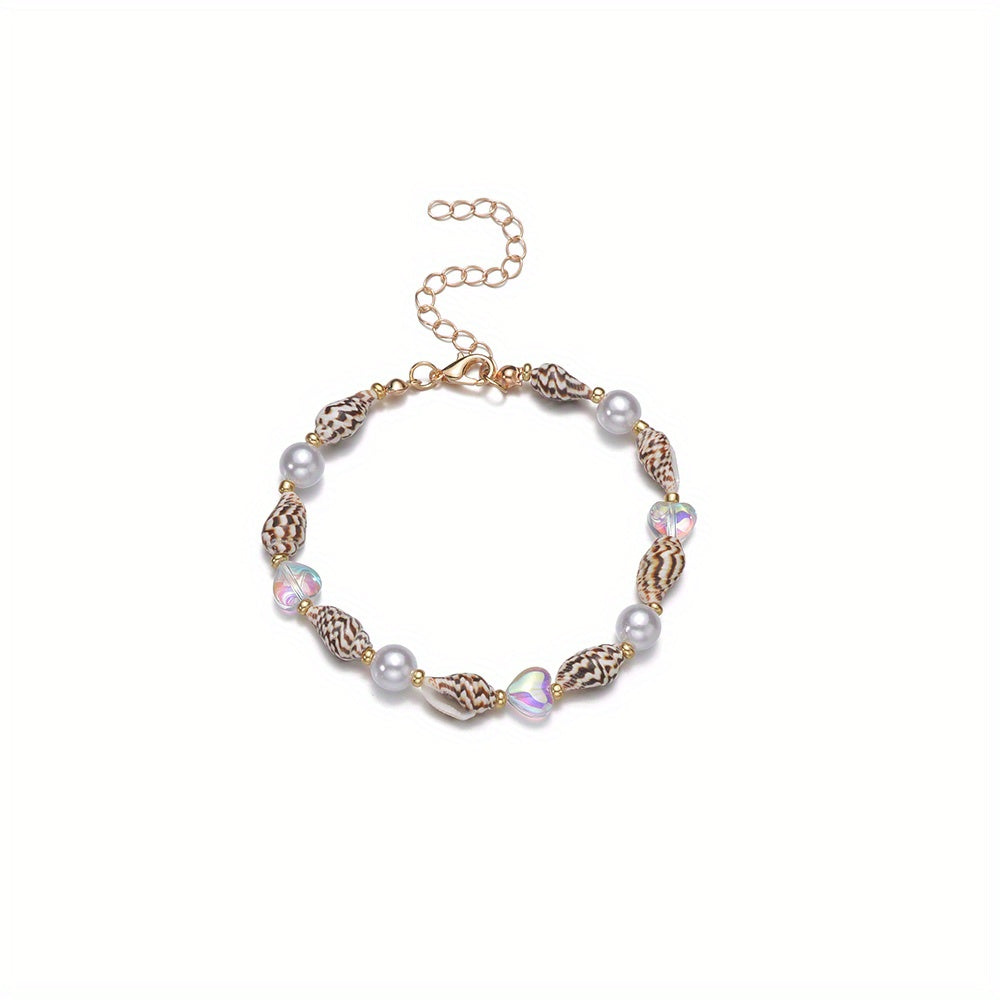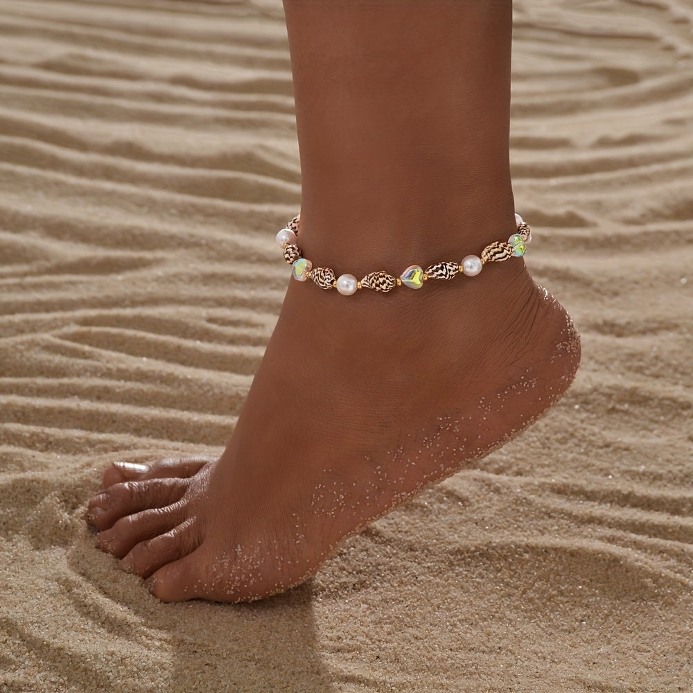 Elegant vintage style ankle bracelet featuring conch shape beads. This anklet is adjustable in size for a comfortable fit.