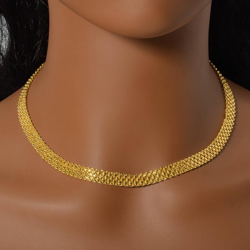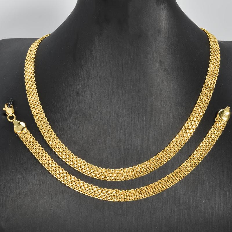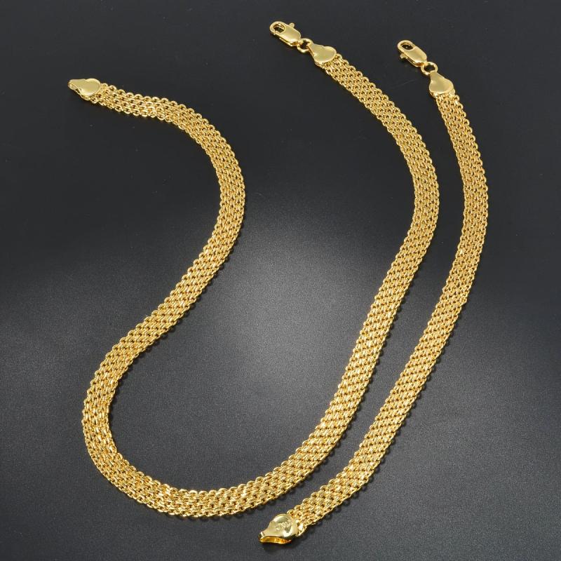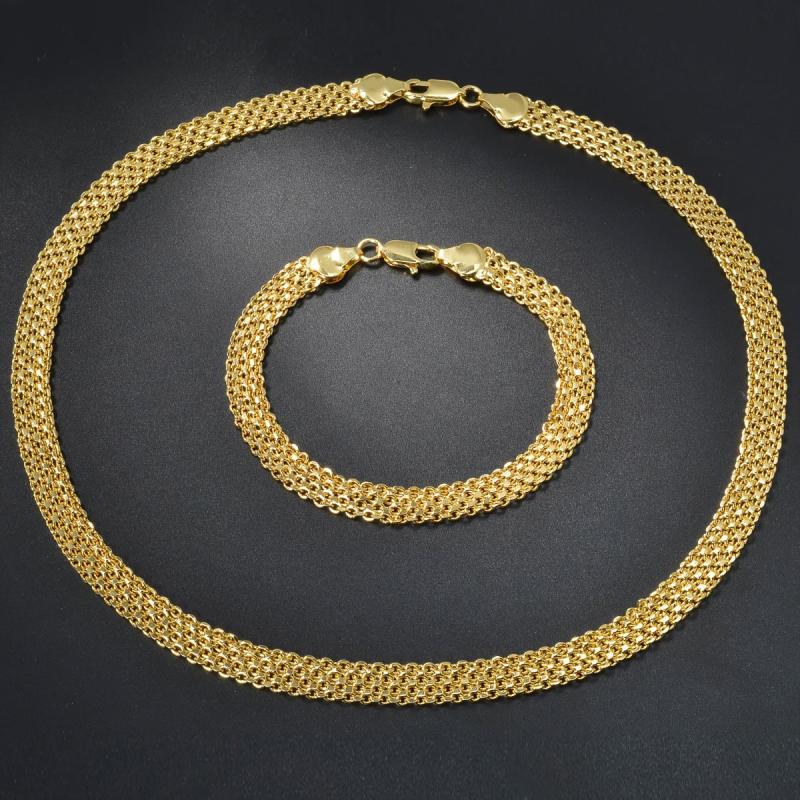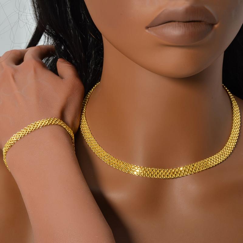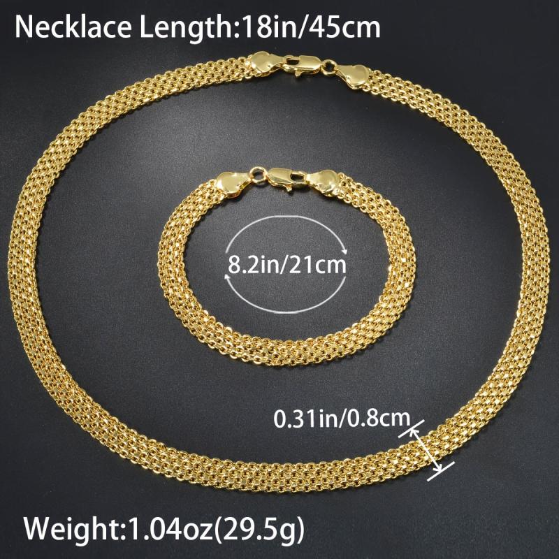 This trendy copper jewelry set includes a necklace and a bracelet with a hip hop metal braided chain design. It is a fashionable and neutral style suitable for daily wear or as a gift.