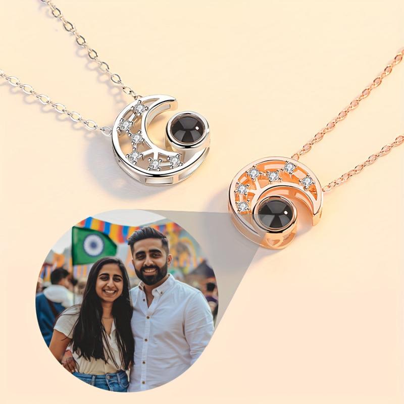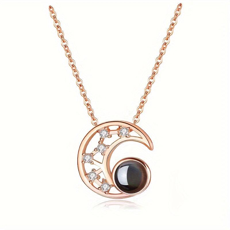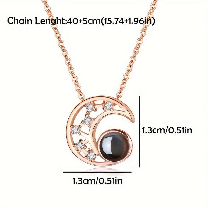 This customizabe copper moon pendant is adorned with synthetic zirconia stones and comes with a titanium chain. It's a perfect gift for your girlfriend, mother, wife, or grandmother on their birthday.