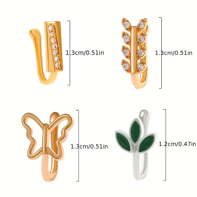 Add a touch of elegance with this copper nose ring featuring inlaid zircon stones and a unique butterfly design. Perfect for everyday wear or special occasions.