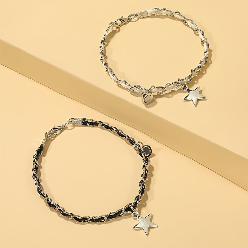 This couples matching magnetic bracelet features a star shape pendant for a stylish and elegant look. It is adjustable to fit any wrist size and makes a perfect hand jewelry accessory or present for your loved one.