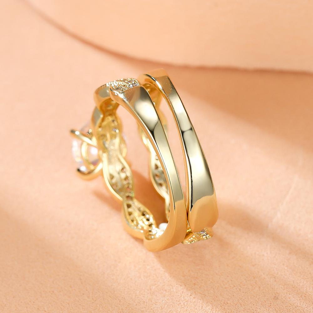 Elegant and stylish couples ring featuring a cross shape design with zircon inlay. Made of high-quality 18K plated copper, perfect for weddings and engagements.
