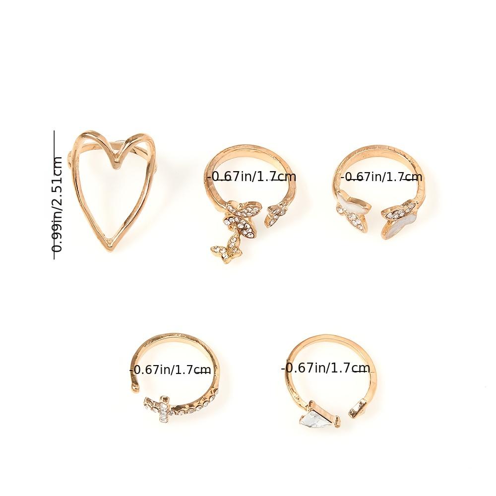 This 5-piece joint ring set features cross, triangle, and butterfly designs. Perfect for expressing your love and style.