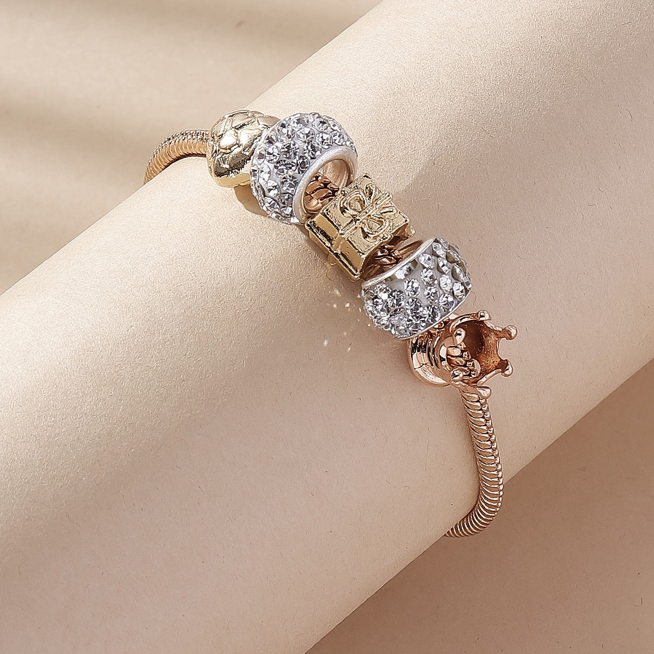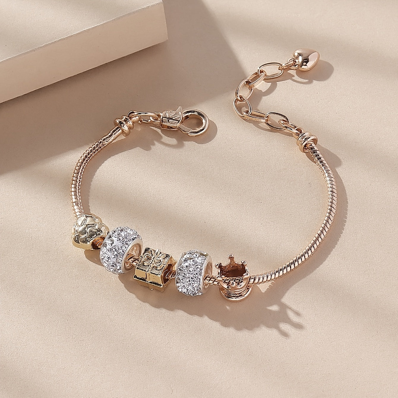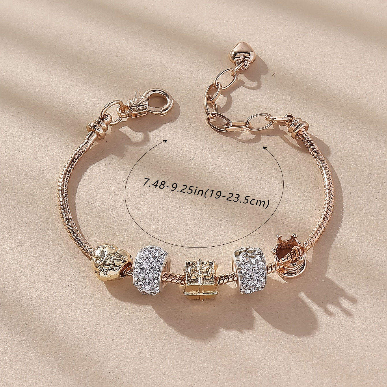 Elegant rhinestone beaded bracelet featuring a crown design, perfect for daily wear. This adjustable bracelet adds a touch of glamour to any outfit.
