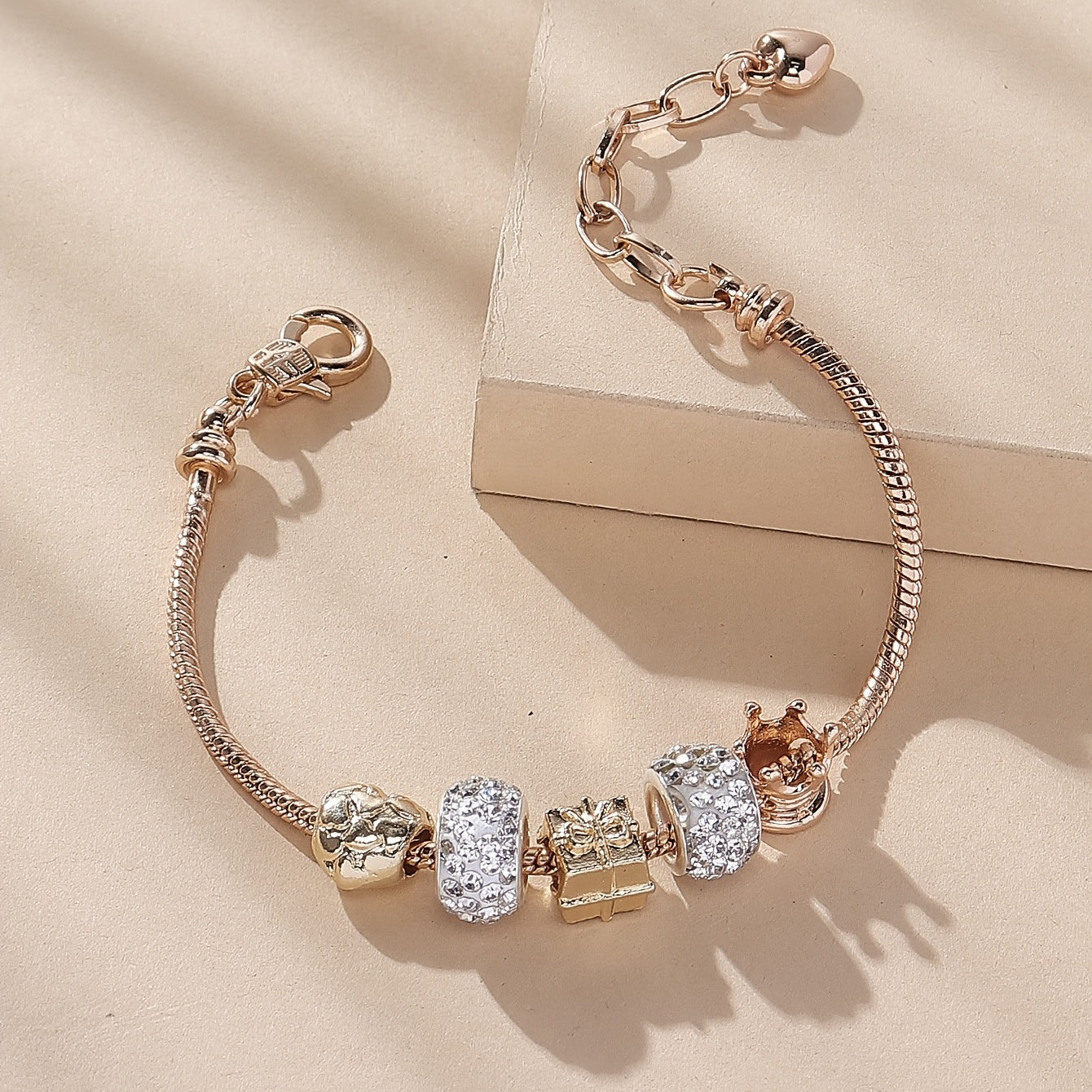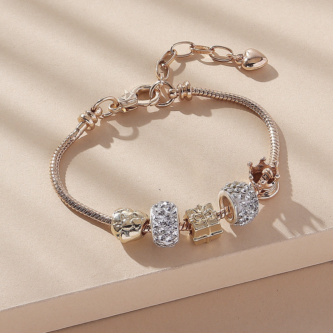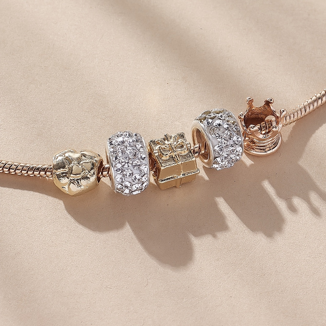 Elegant rhinestone beaded bracelet featuring a crown design, perfect for daily wear. This adjustable bracelet adds a touch of glamour to any outfit.