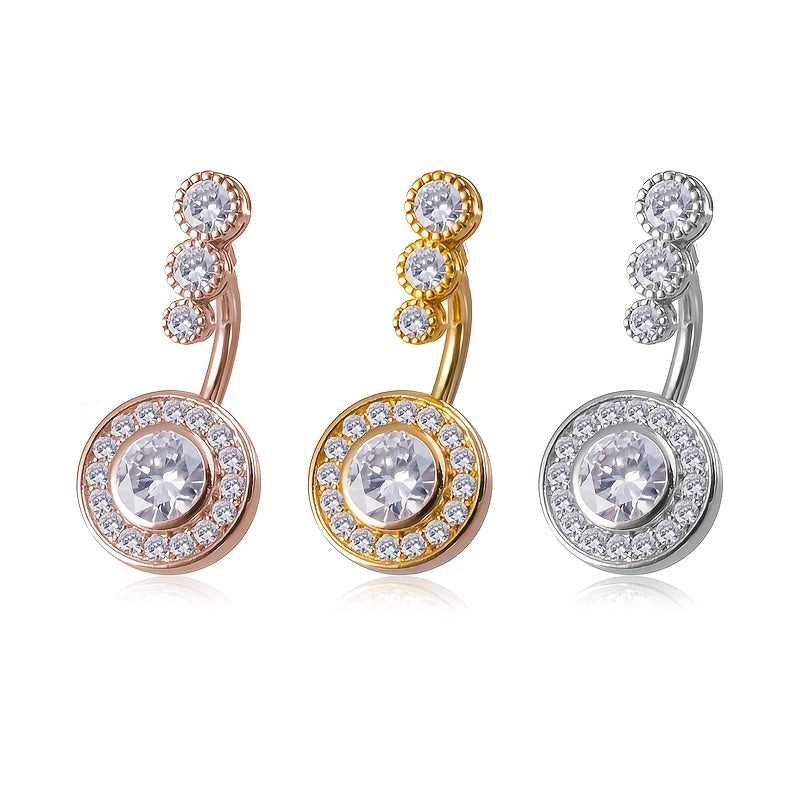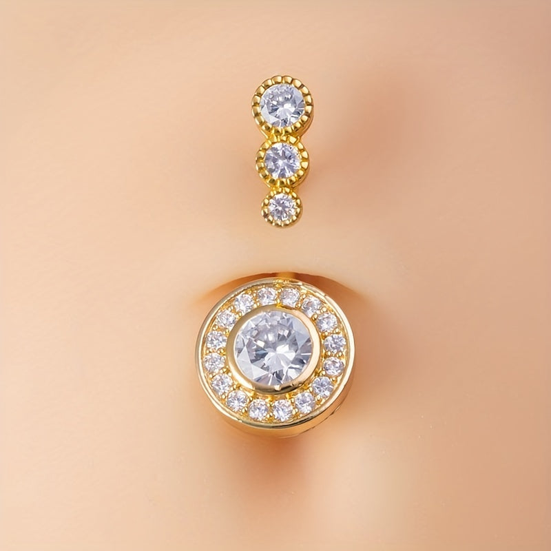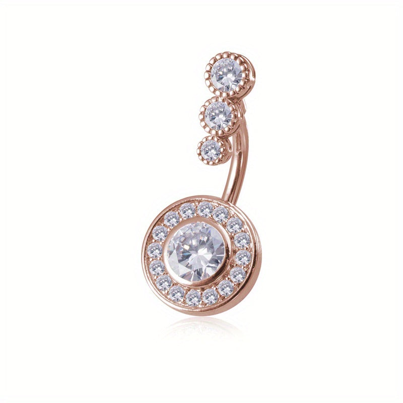 Elevate your beach look with this sexy crystal navel piercing belly button ring made of stainless steel and inlaid with zircon. Perfect body jewelry for women.