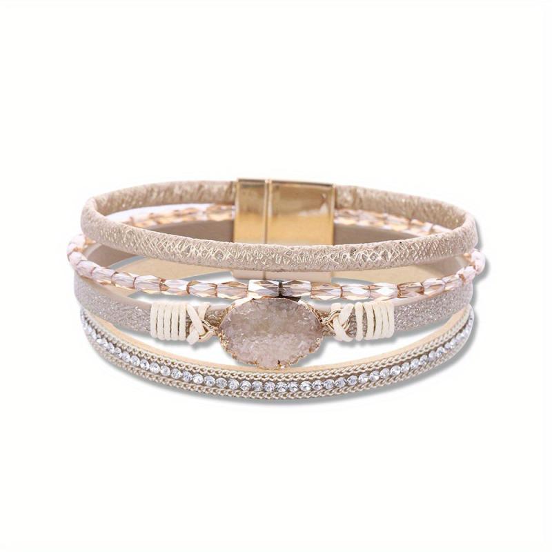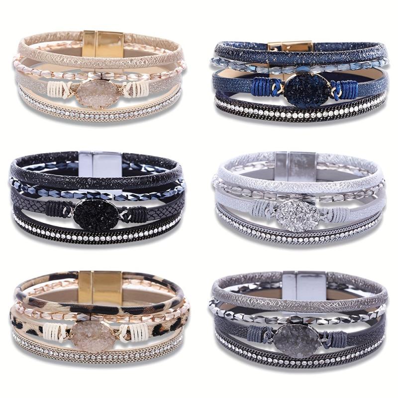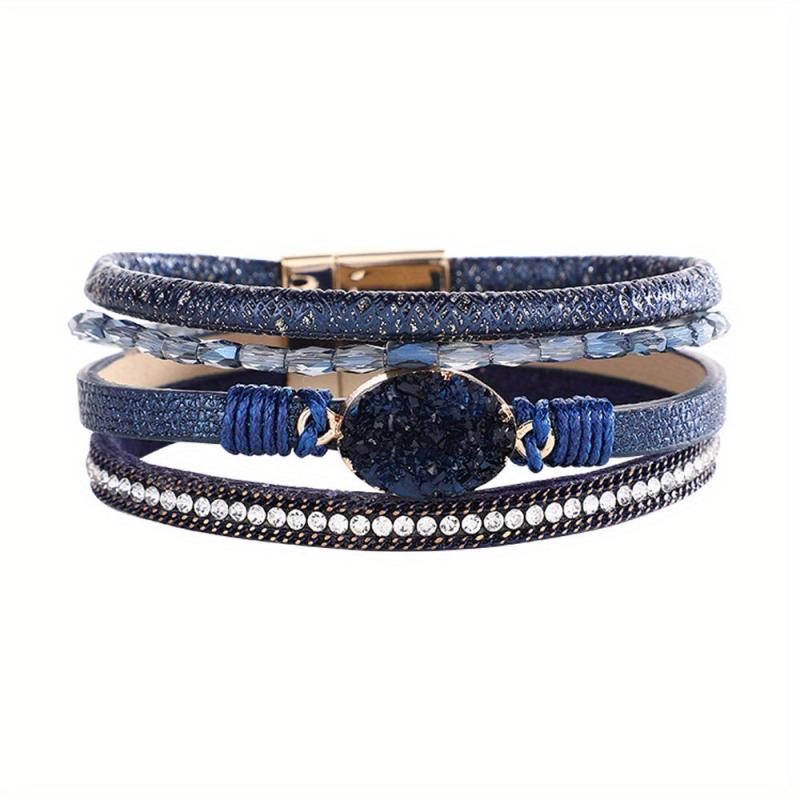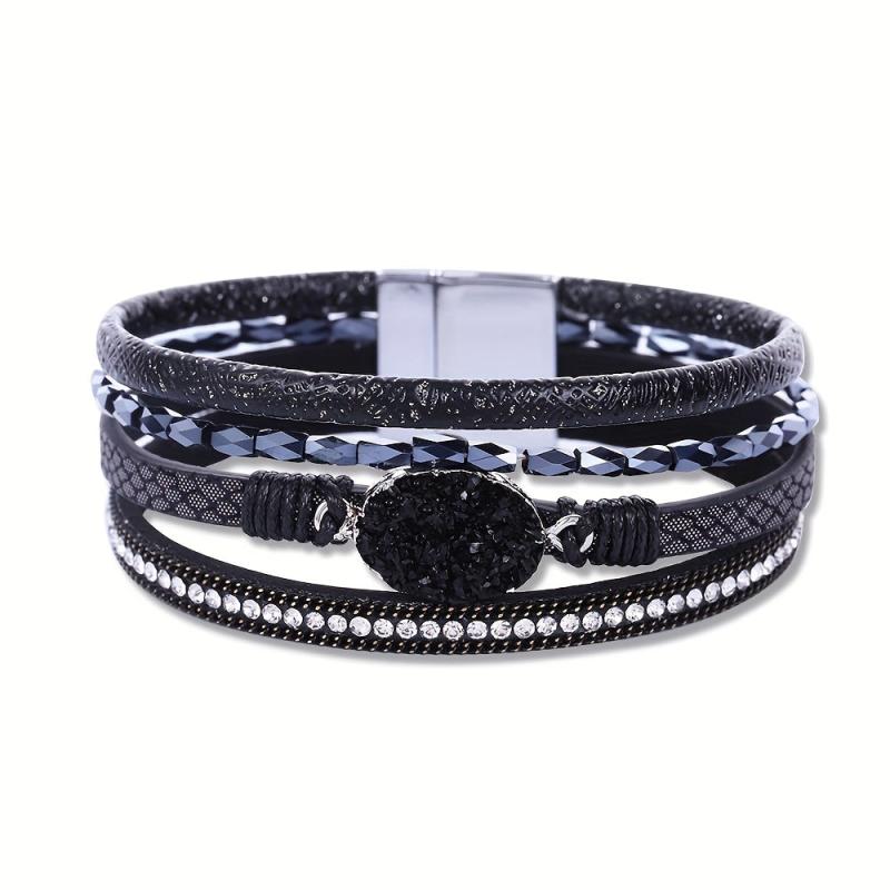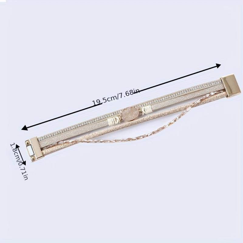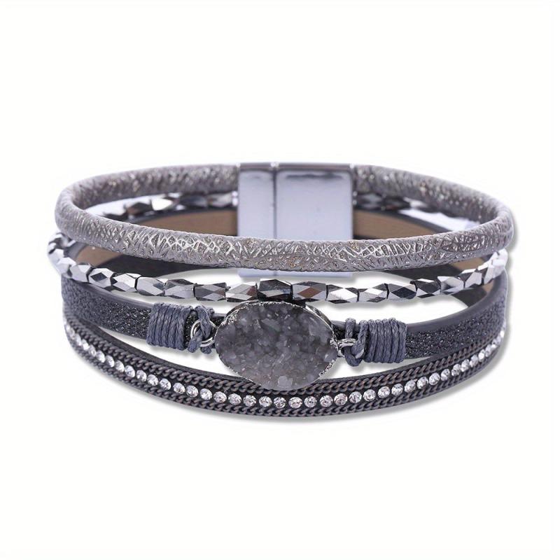 Add a touch of sparkle to your outfit with this crystal PU leather bracelet. The clasp closure ensures a secure fit, making it perfect for women and teen girls.