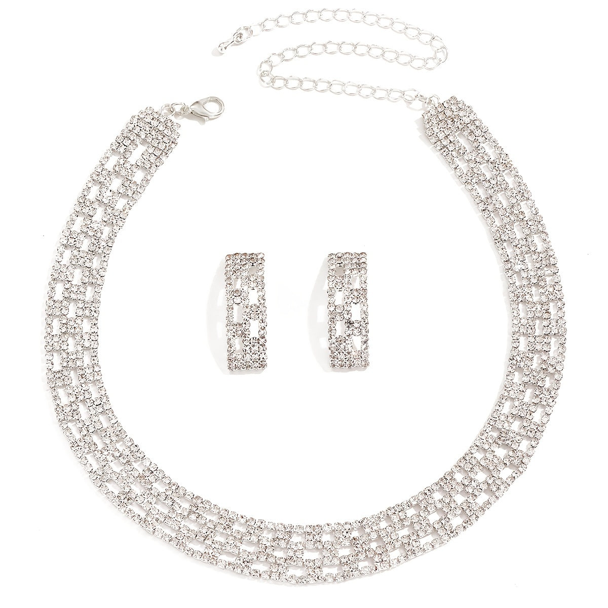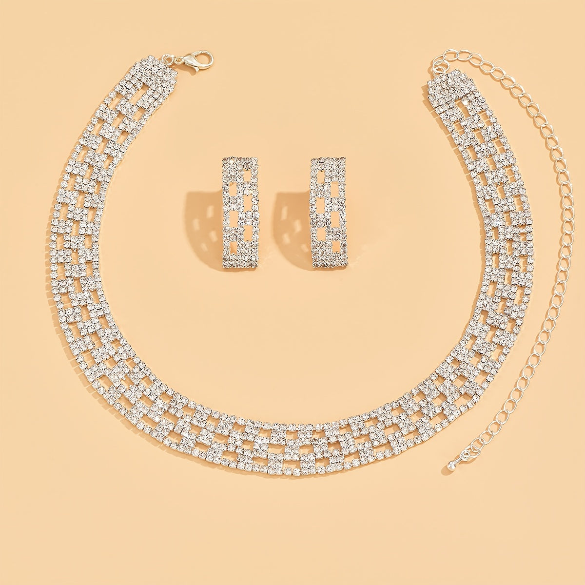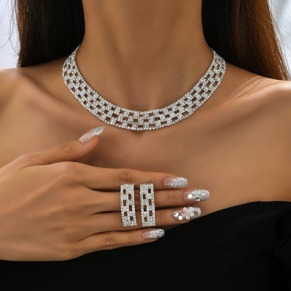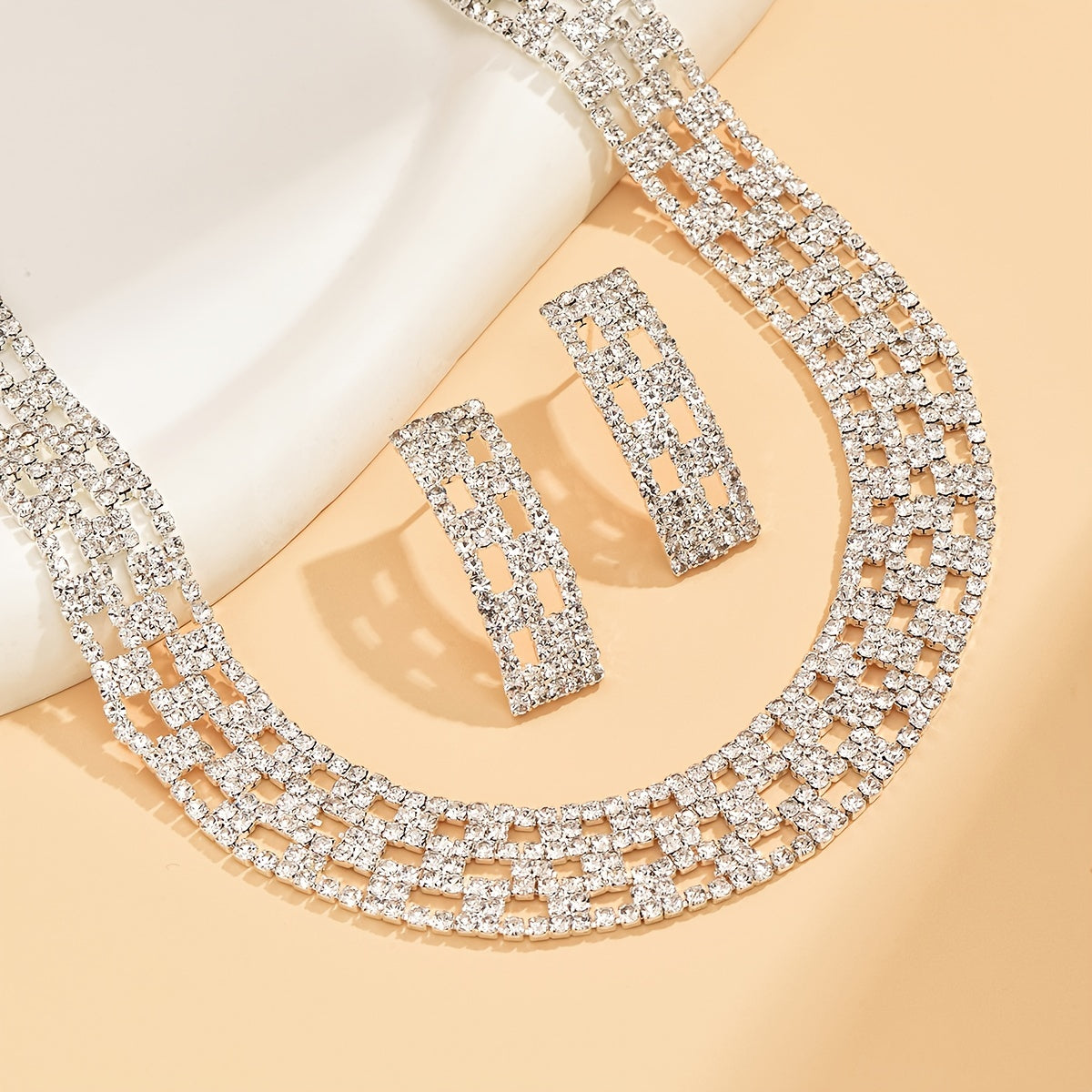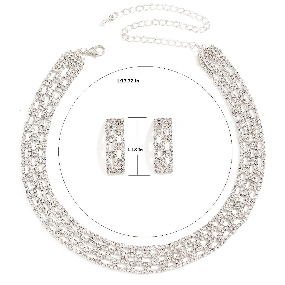 Complete your elegant look with this stunning crystal necklace and earrings set. Perfect for weddings, dinners, or any special occasion.
