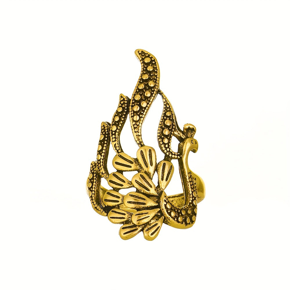 Make a bold statement with this unique cuff ring featuring animal elements like a peacock, lizard, and leopard. Perfect for daily wear or special occasions!