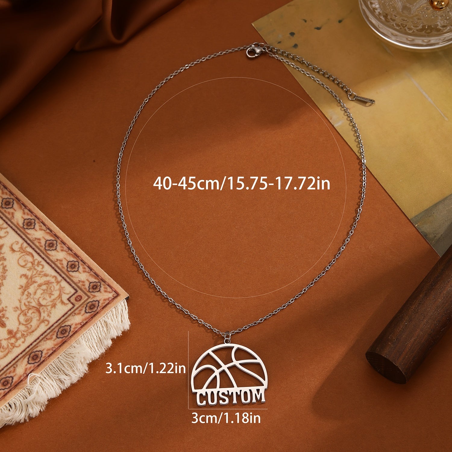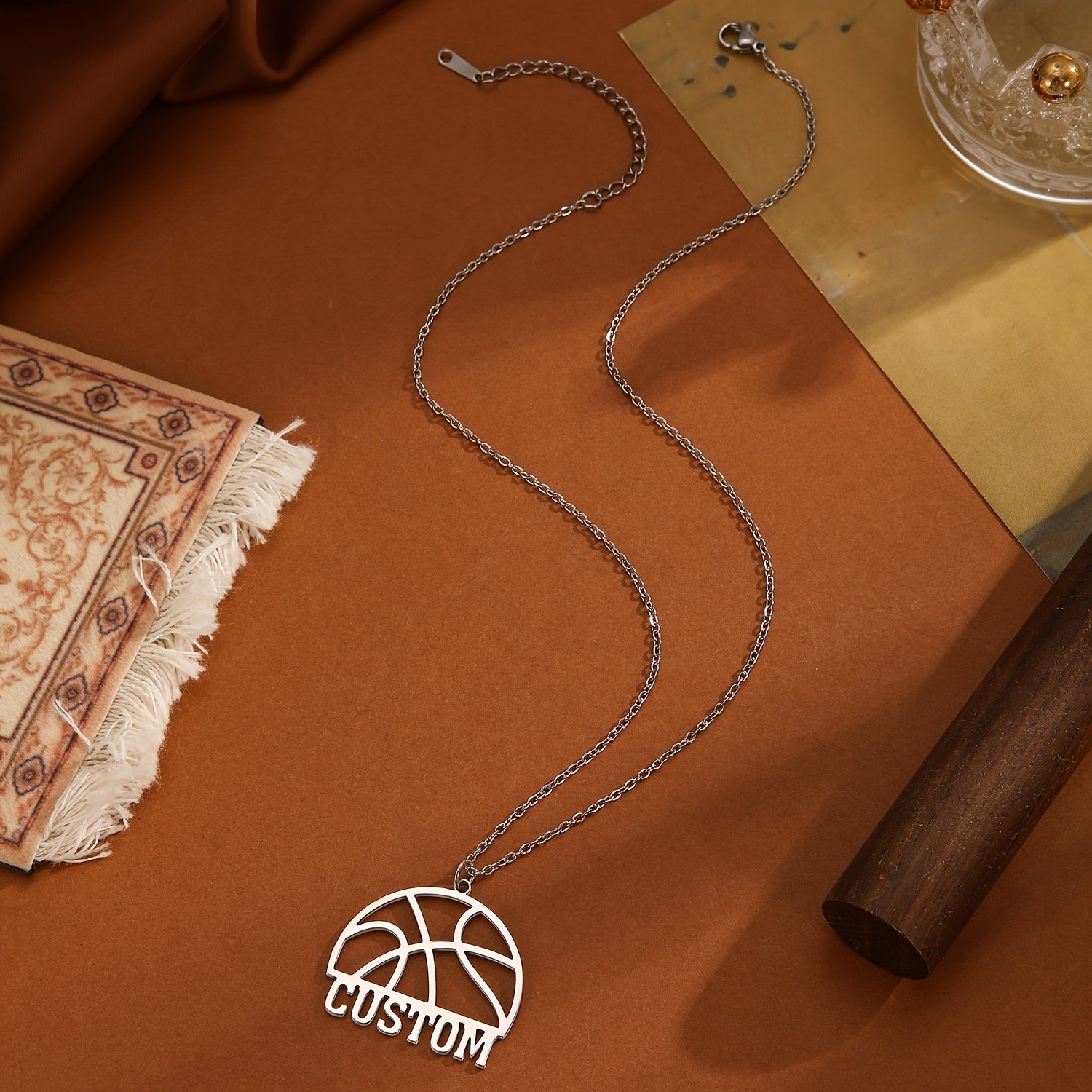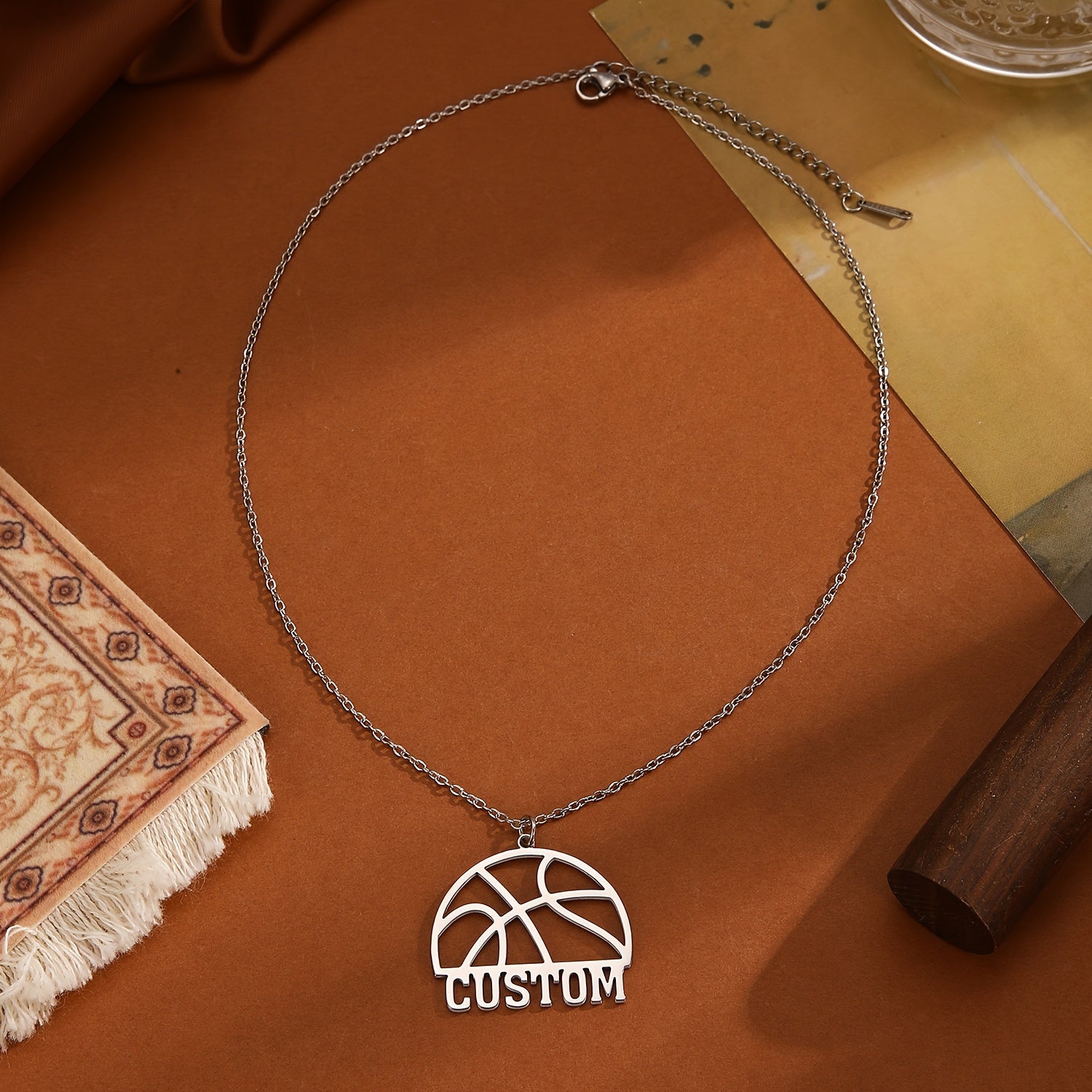 This pendant necklace features a hollow basketball design with customizable letters and names, perfect for sports enthusiasts. A unique and creative gift idea!