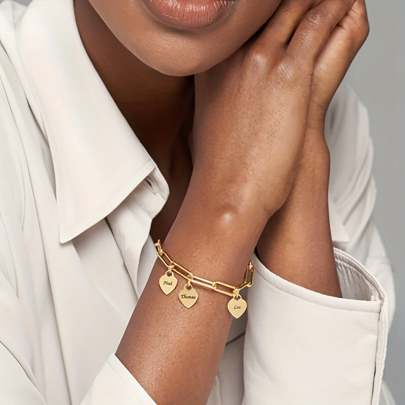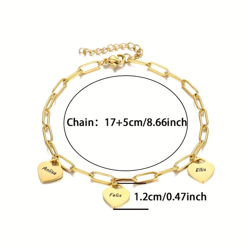 Personalize this beautiful square wire chain bracelet with a heart charm. Add your unique touch with custom name engraving.