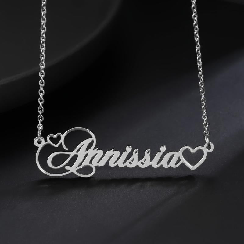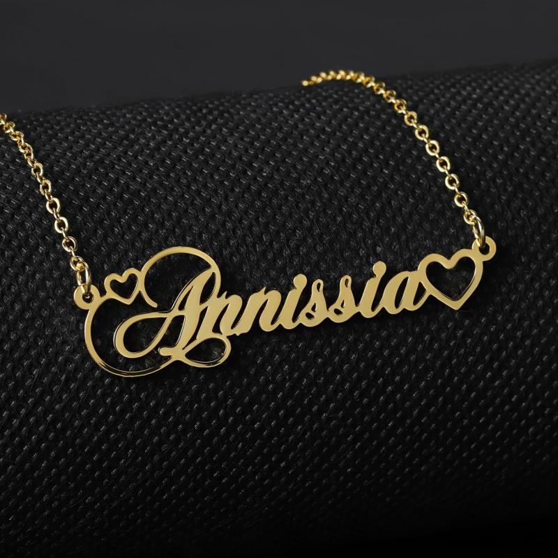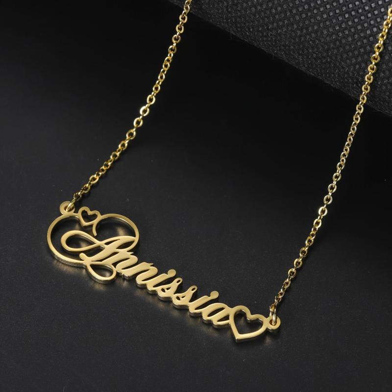 Surprise your loved one with this unique heart-shaped letter name necklace. Personalize it with English language engraving for a romantic keepsake.
