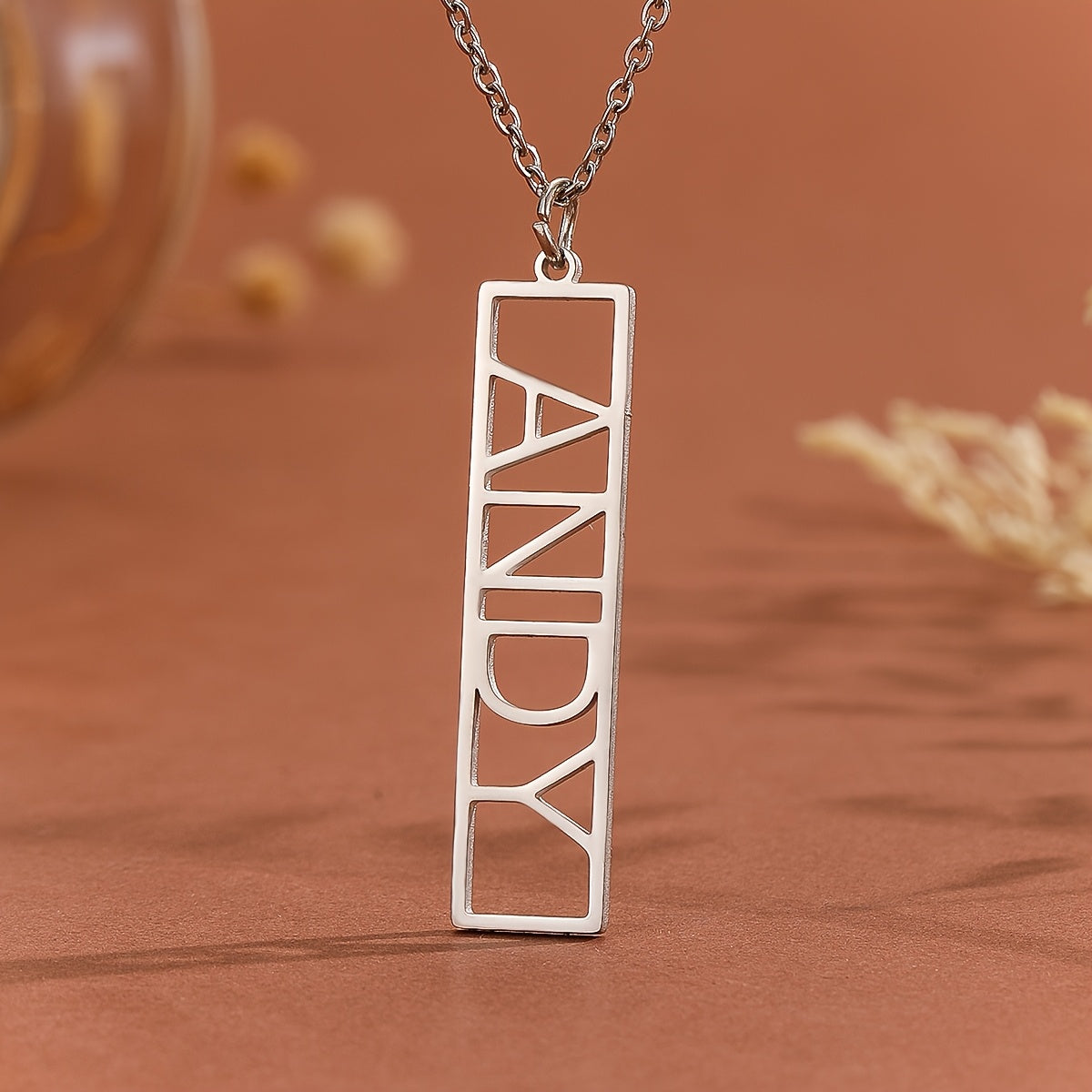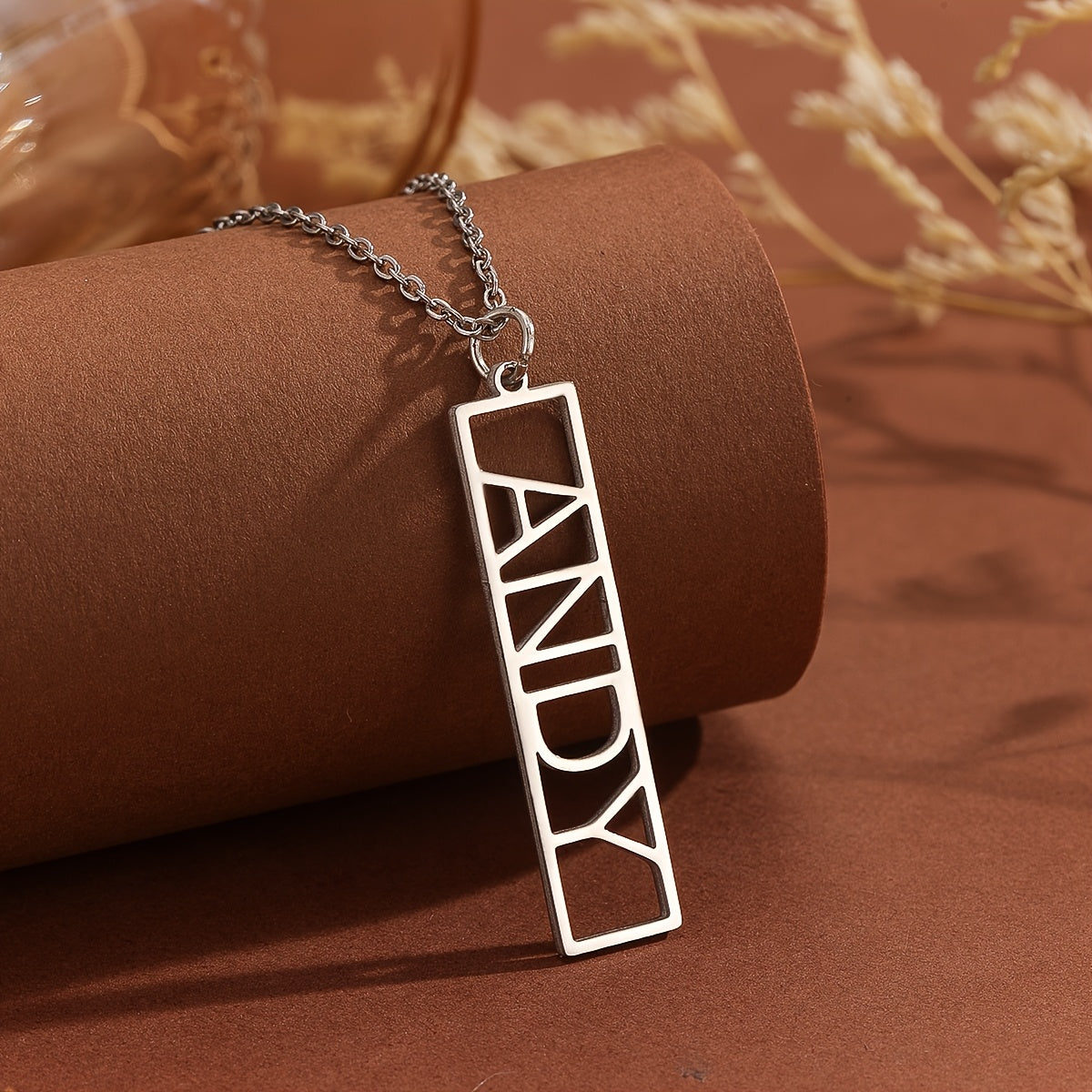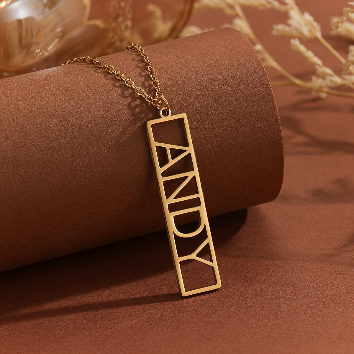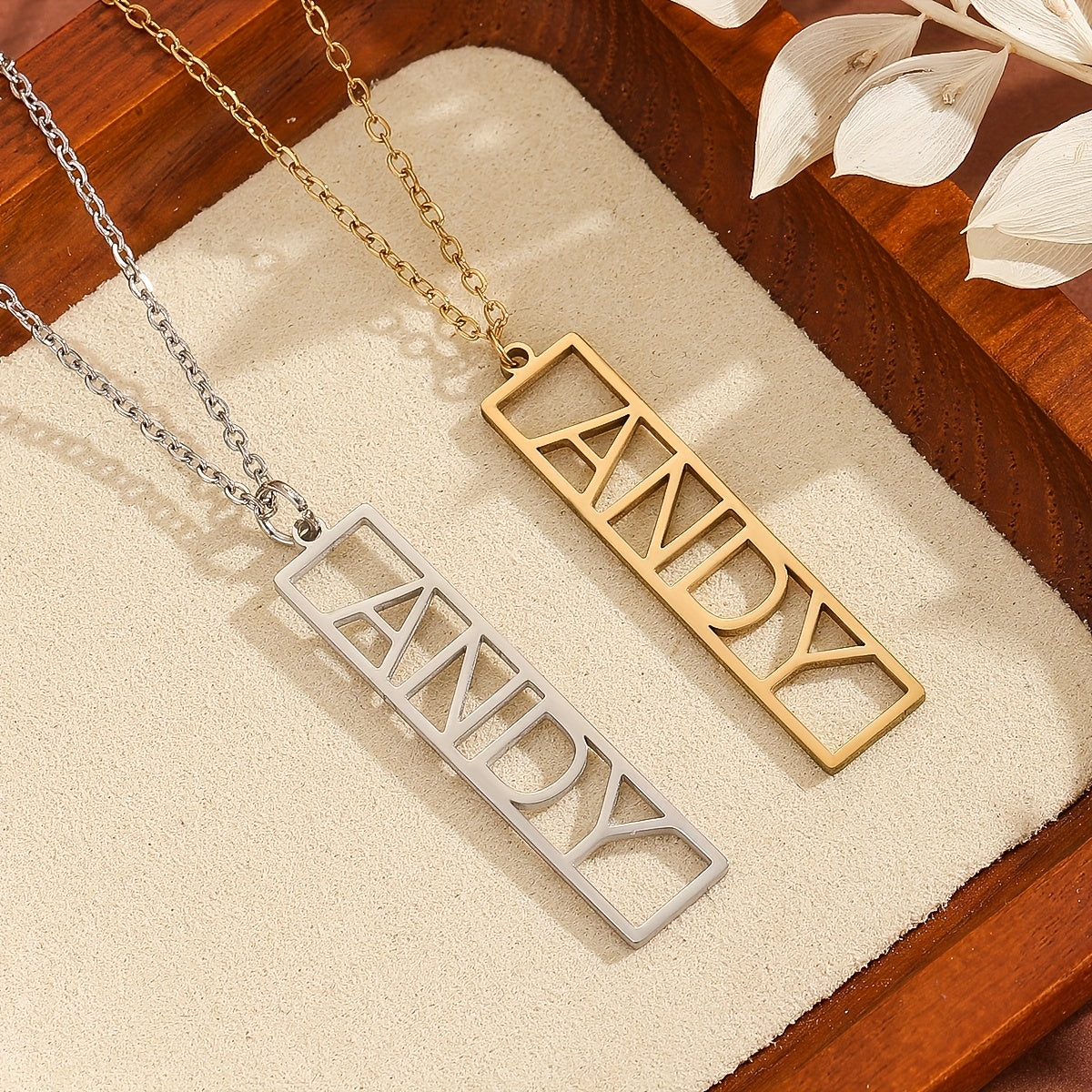 This minimalist personalized name necklace features an adjustable chain, perfect for casual attire or gifting to women.
