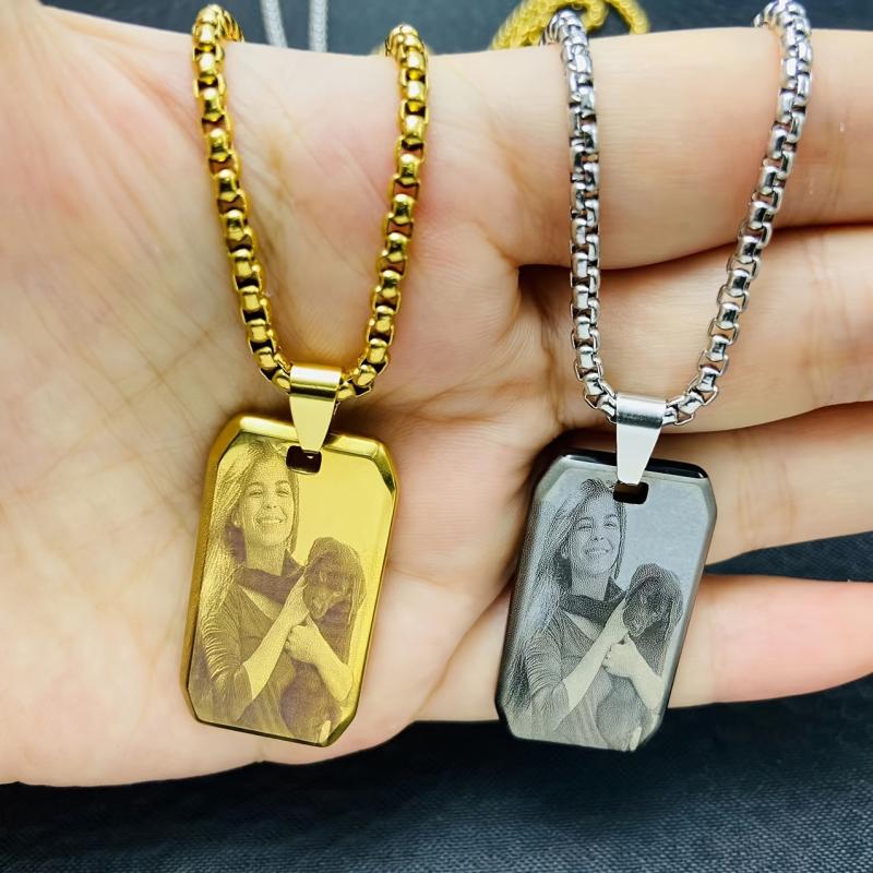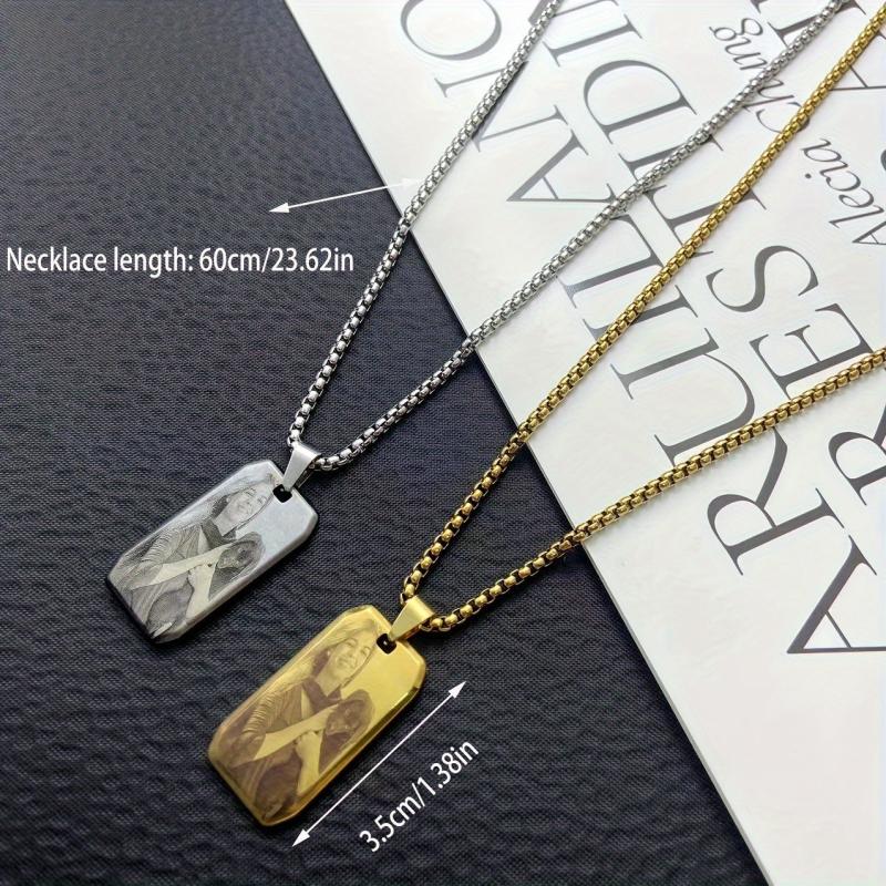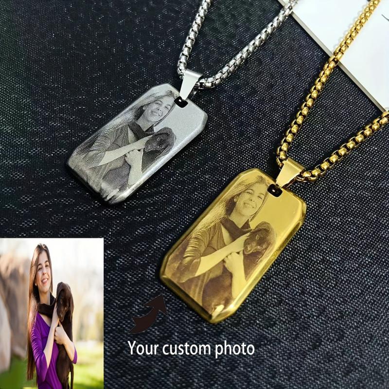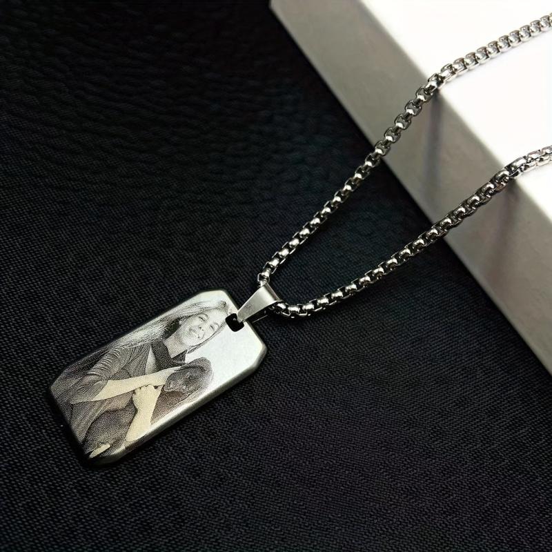 Create a unique and stylish metal pendant necklace featuring a personalized photo, perfect for both men and women. Keep your cherished memories close with this timeless memorial gift.