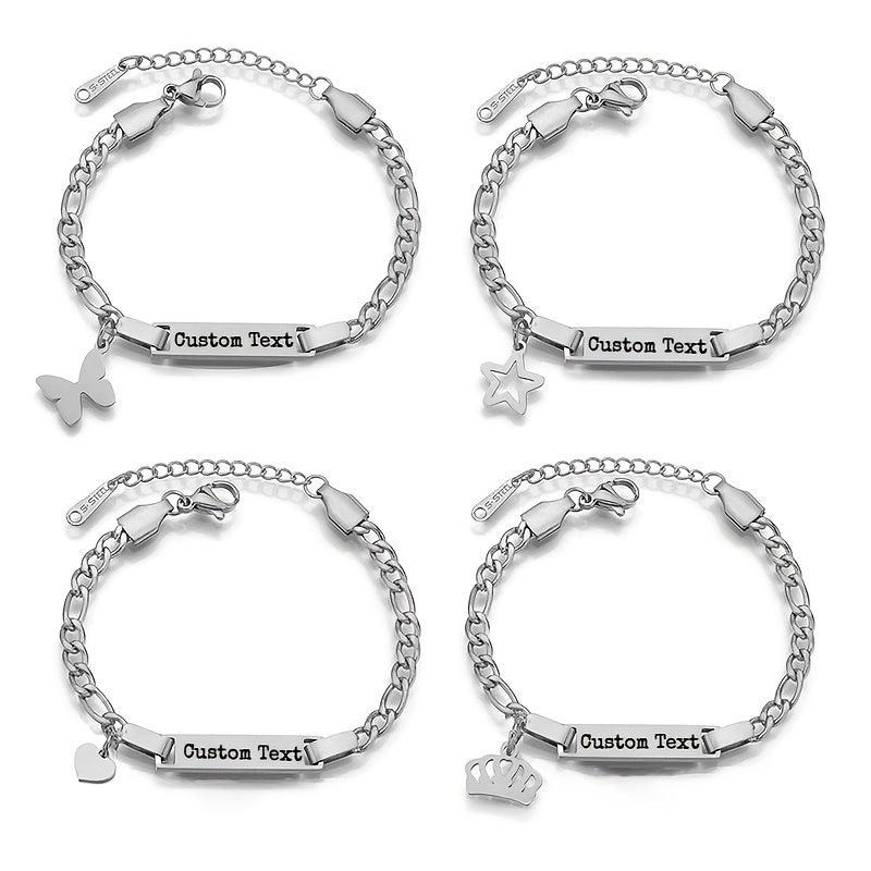Get this personalized titanium steel bracelet featuring lettering and star charm. Ideal for women, men, and children. Perfect accessory for mothers, fathers, and kids alike.