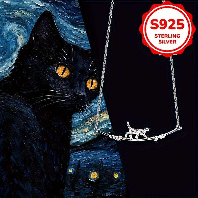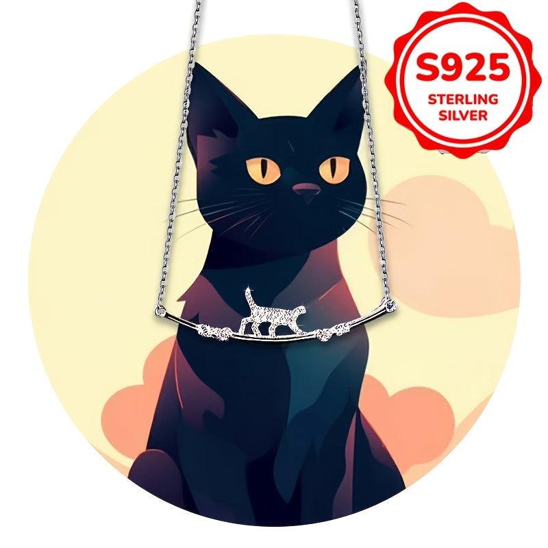 Adorable cat pendant necklace featuring sparkling cubic zirconia stones.