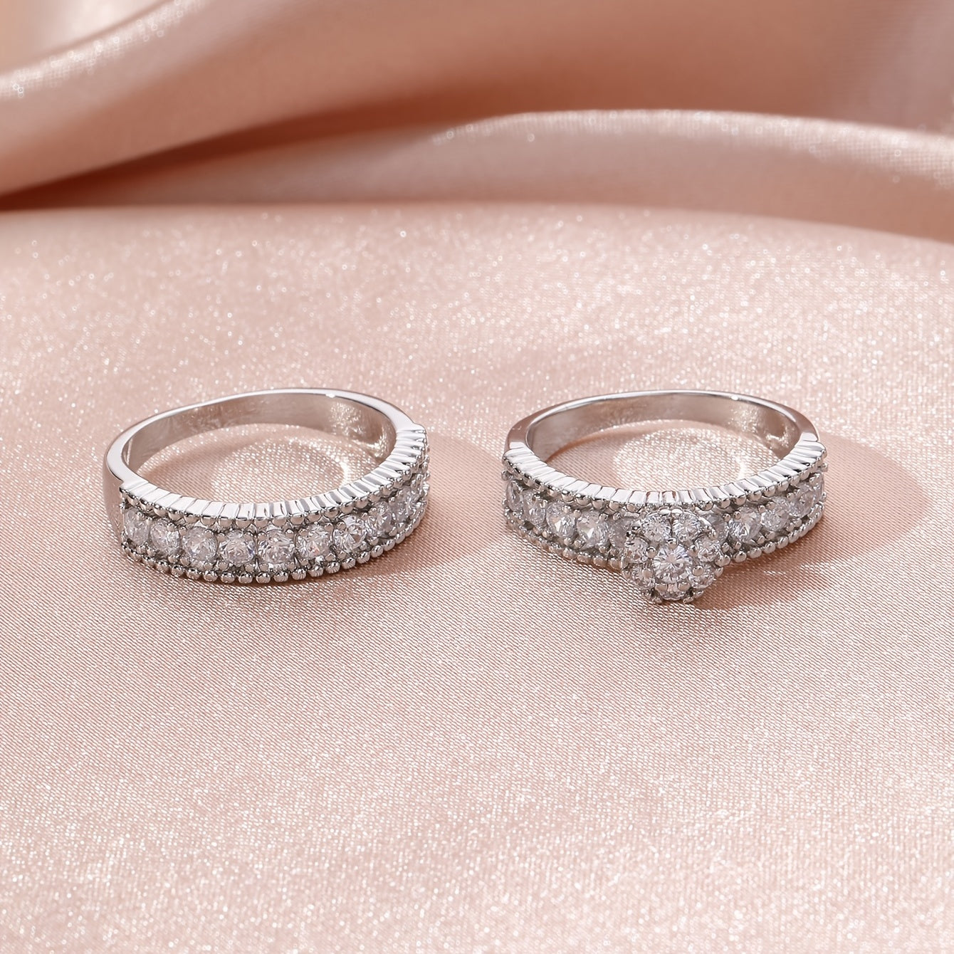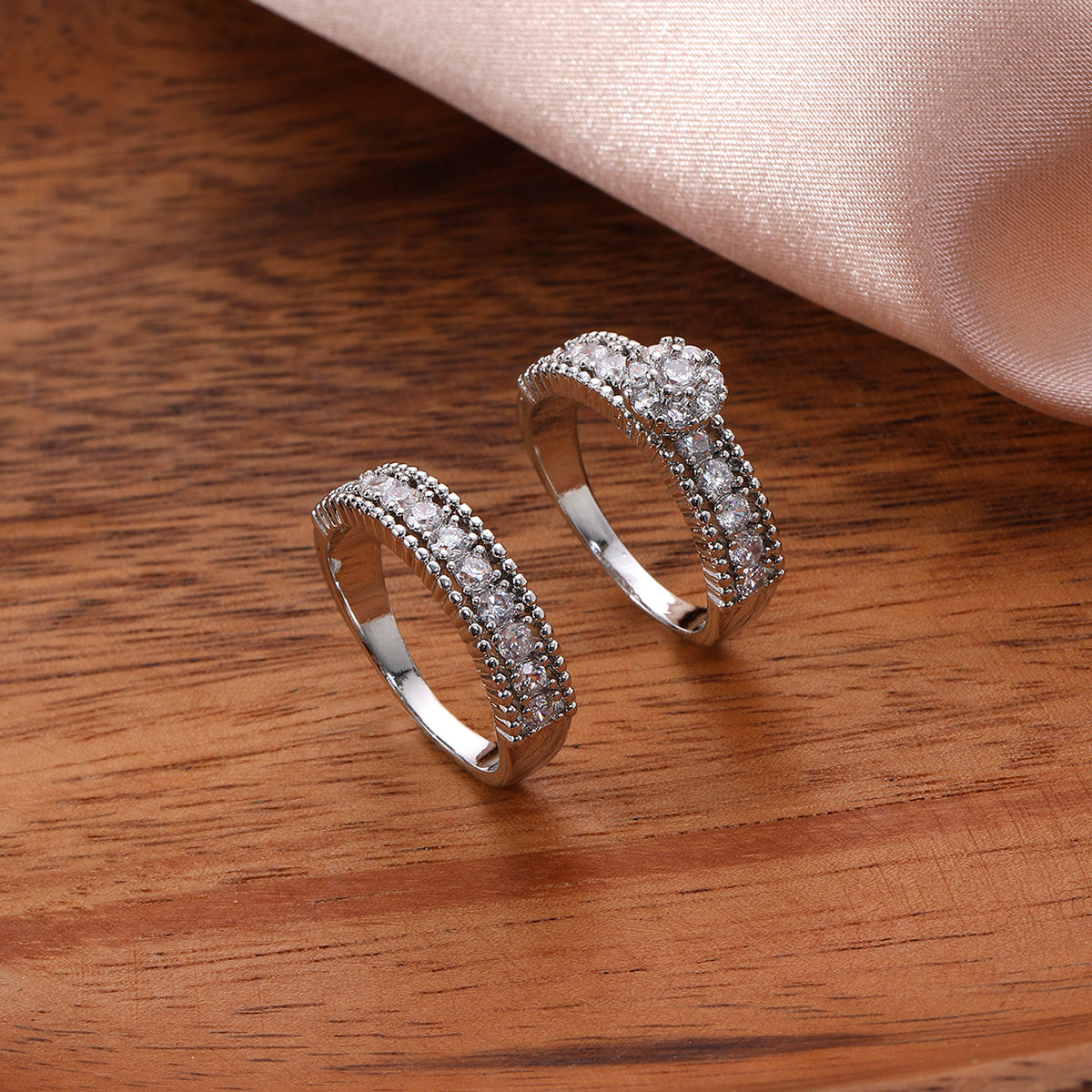 Enhance your style with this exquisite 2-piece set of cubic zirconia eternity band rings. Perfect for parties, weddings, and engagements. A delicate and elegant accessory for women and girls.