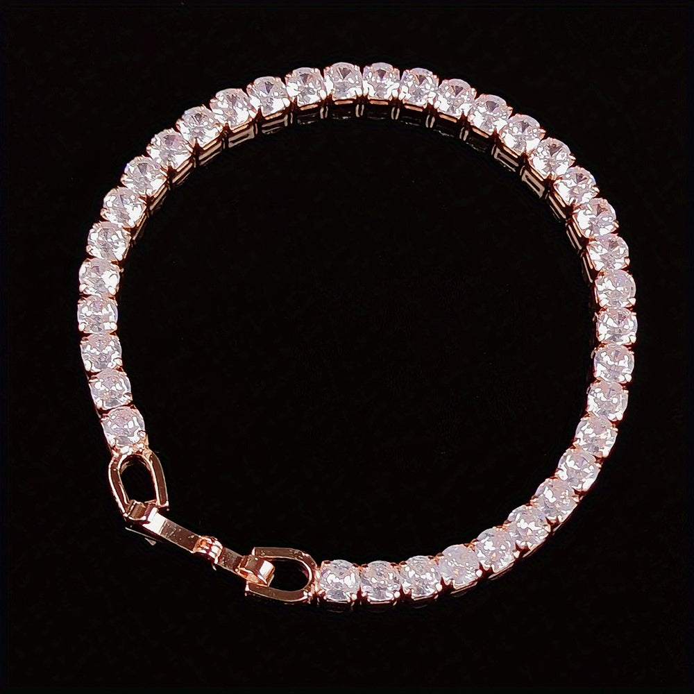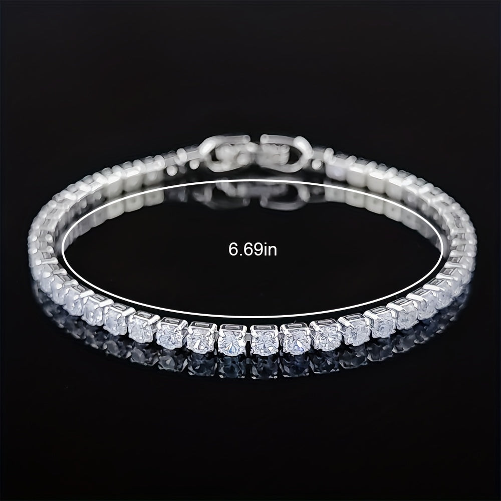 Elegant CZ tennis bracelet designed for women. Perfect for weddings, parties, and as a thoughtful gift. Sparkling and stylish addition to any outfit.