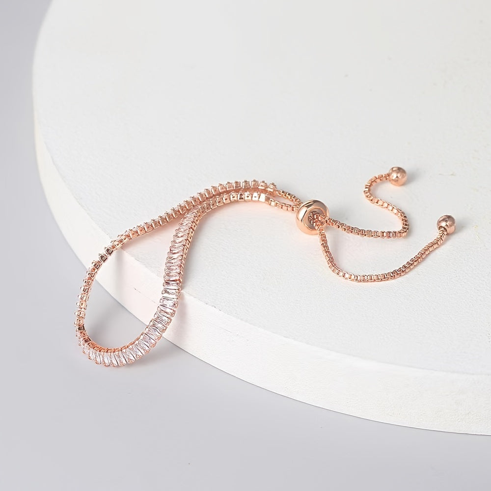 Elegant and timeless, this cubic zirconia tennis chain bracelet is a stunning accessory for women.