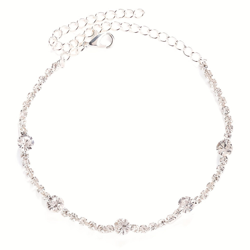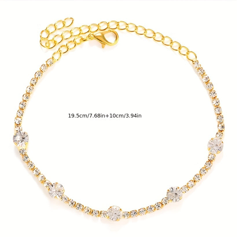 Add a touch of elegance to your ankle with this dainty chain anklet featuring sparkling rhinestones. Perfect for any occasion.