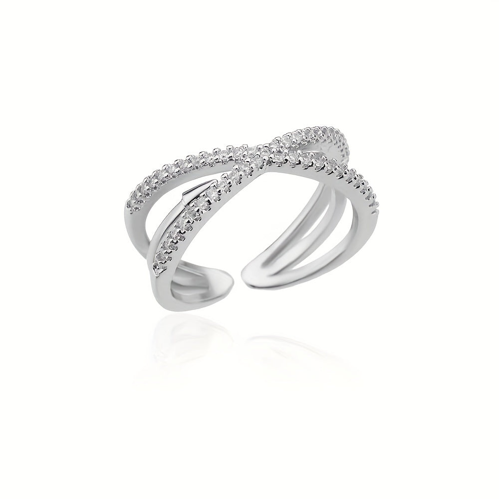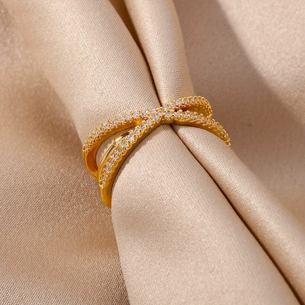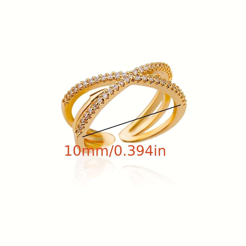 This double-layered ring features shining zircon inlays, perfect for daily outfits or party wear. It is adjustable and adds a touch of elegance to any look.