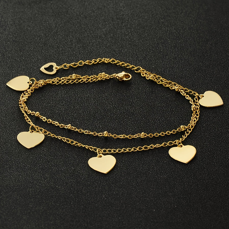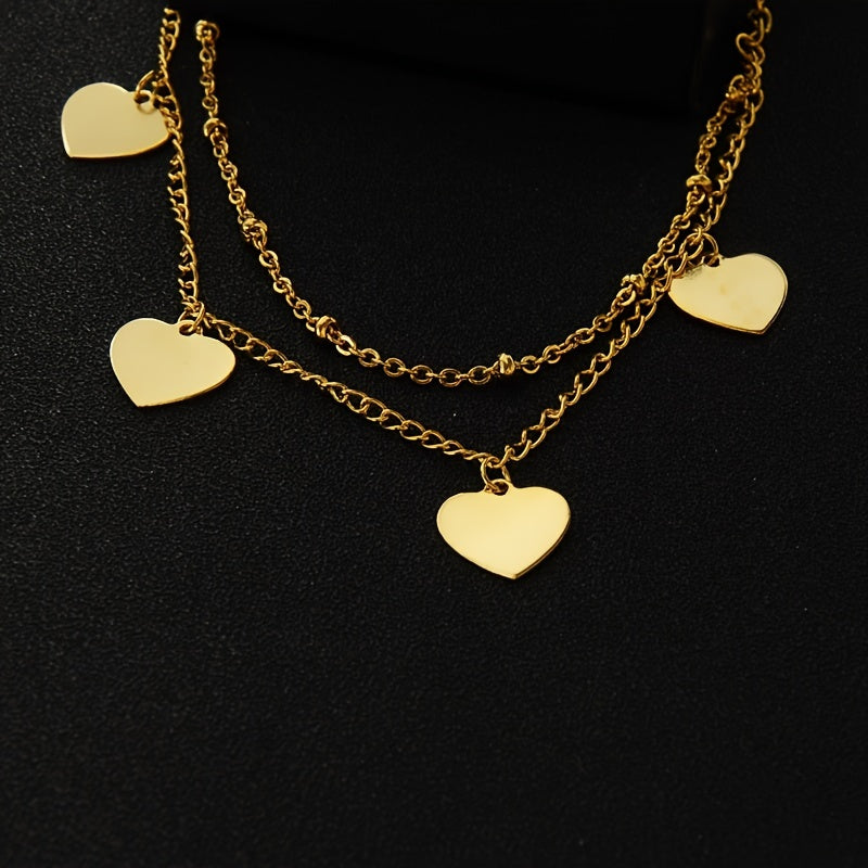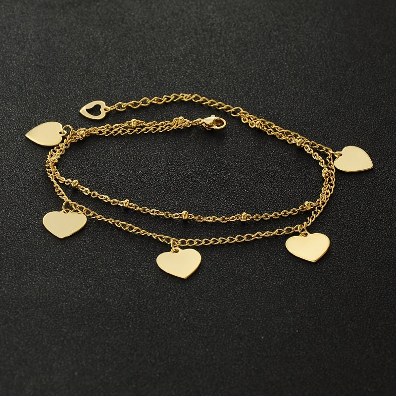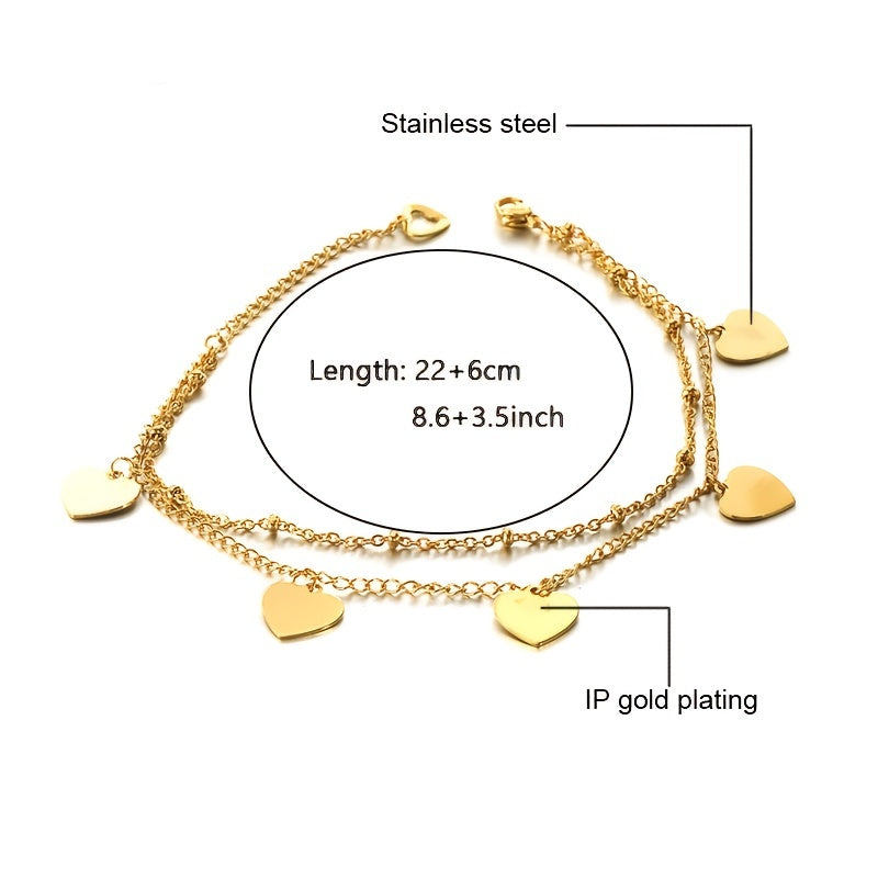 Elegant and stylish double layer heart bracelet plated in 18k gold. Made from durable stainless steel for long-lasting wear.