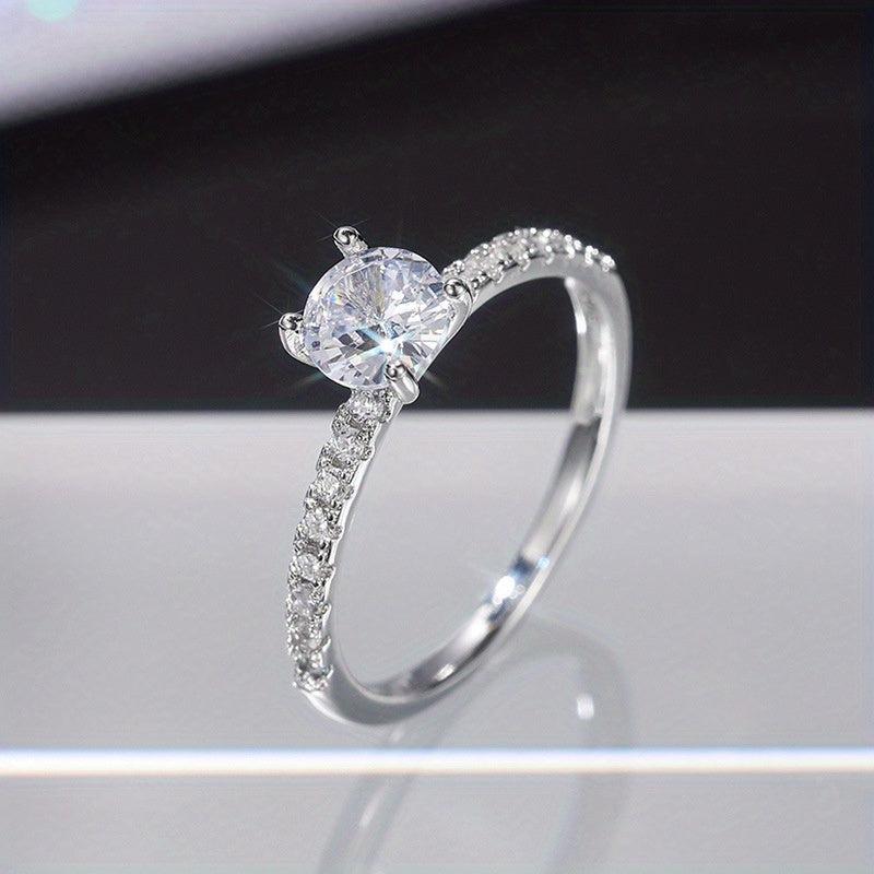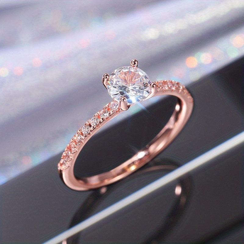 This elegant and dainty engagement ring features a minimalist design with inlaid zircon, perfect for a sweet and stylish woman. It makes a wonderful gift for a special occasion like a wedding or engagement.