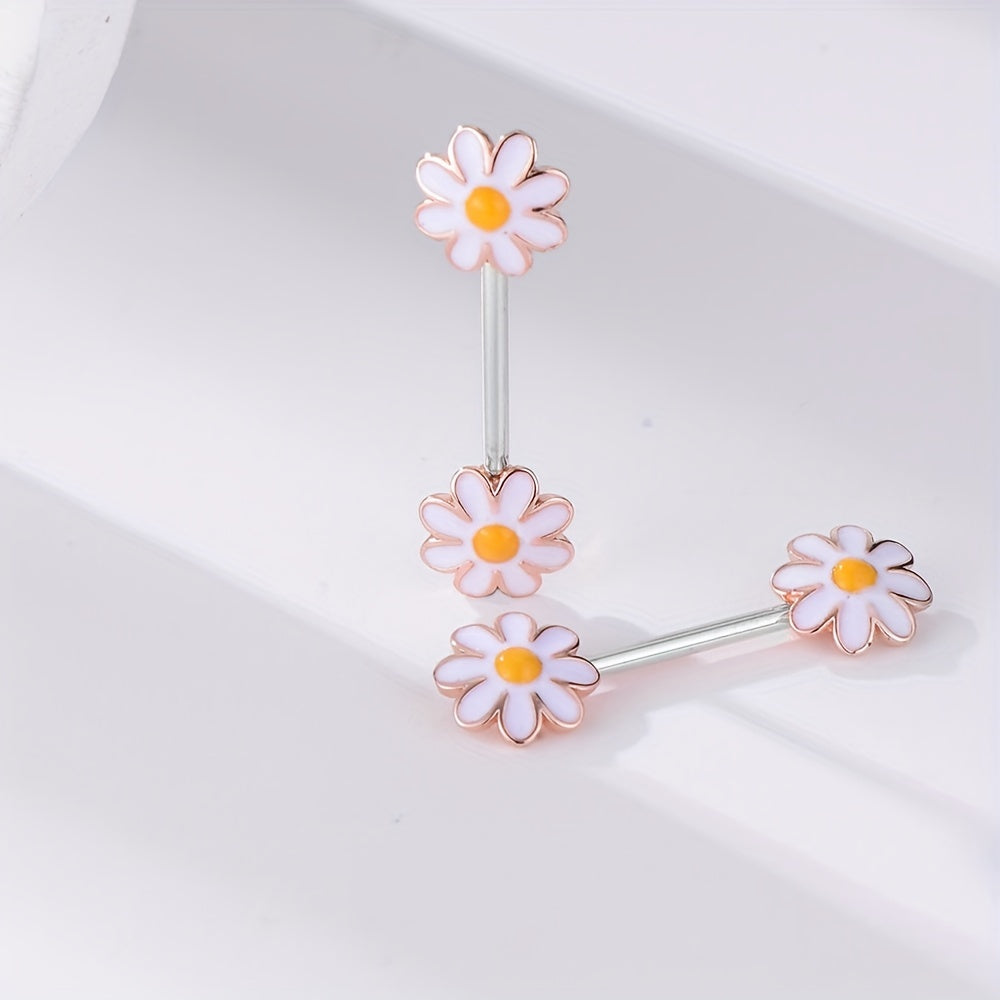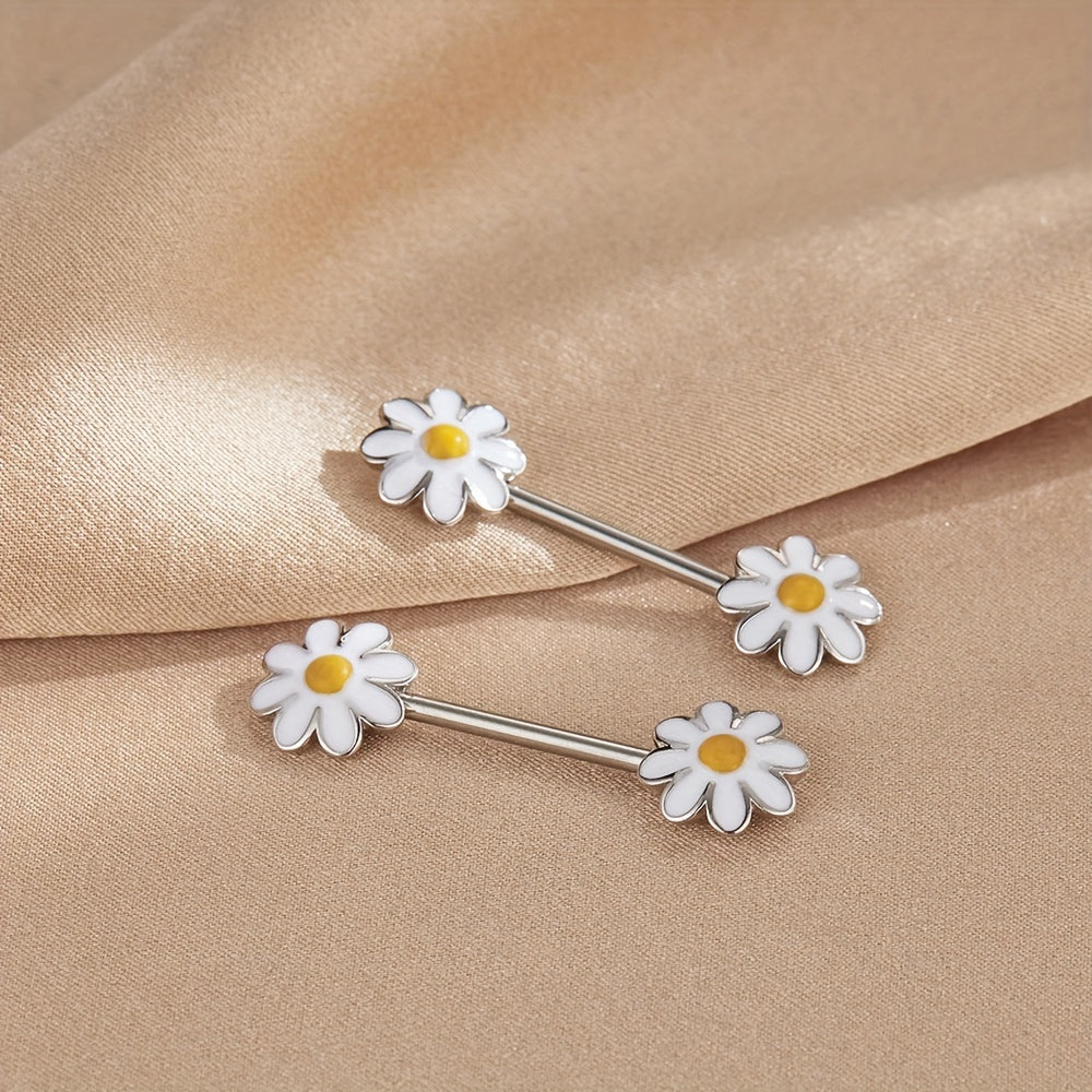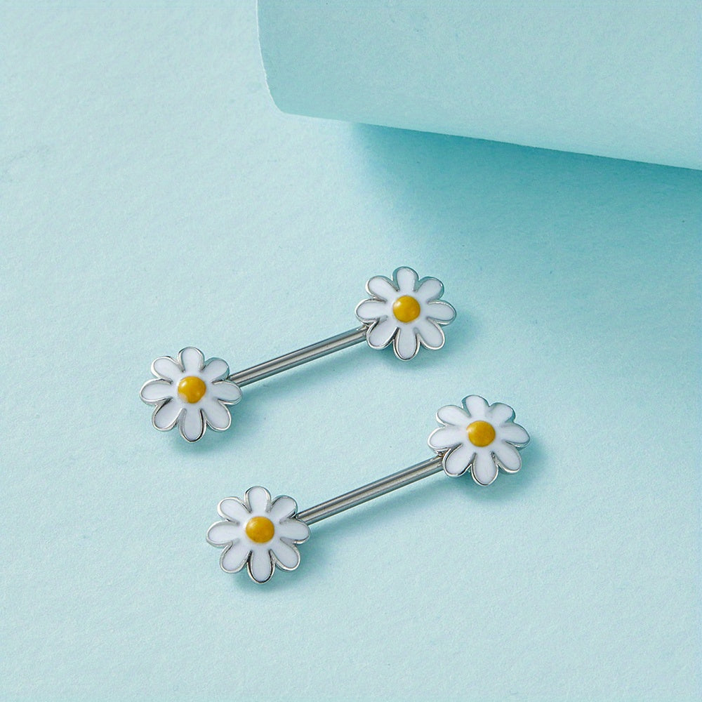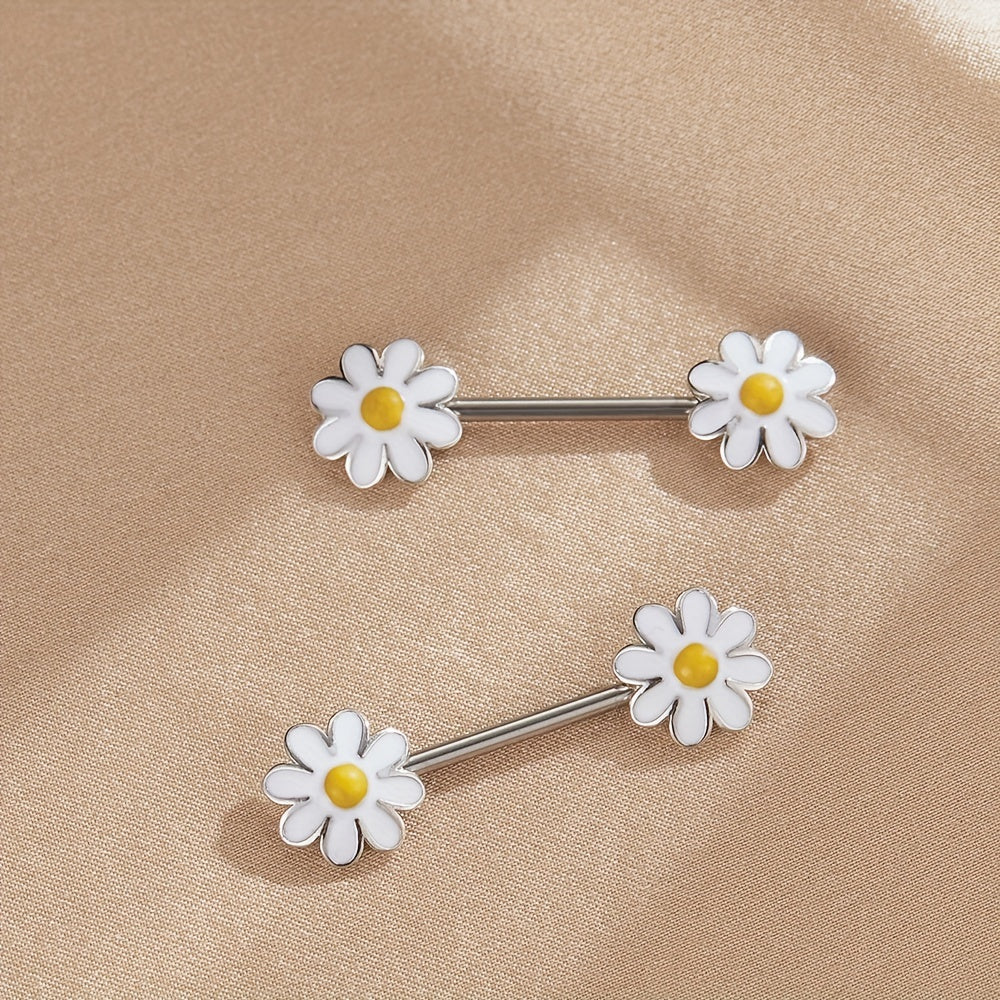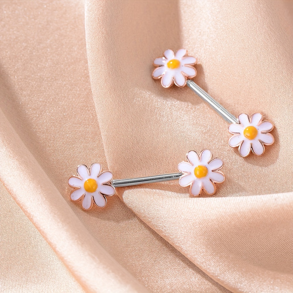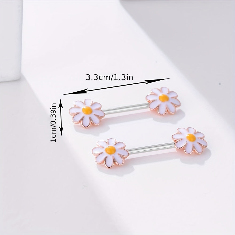 Enhance your style with this set of daisy flower stainless steel nipple rings. Made from high-quality copper, these body jewelry pieces add a touch of elegance to your look.