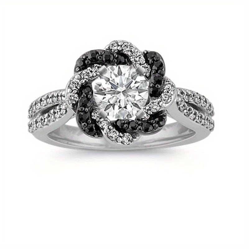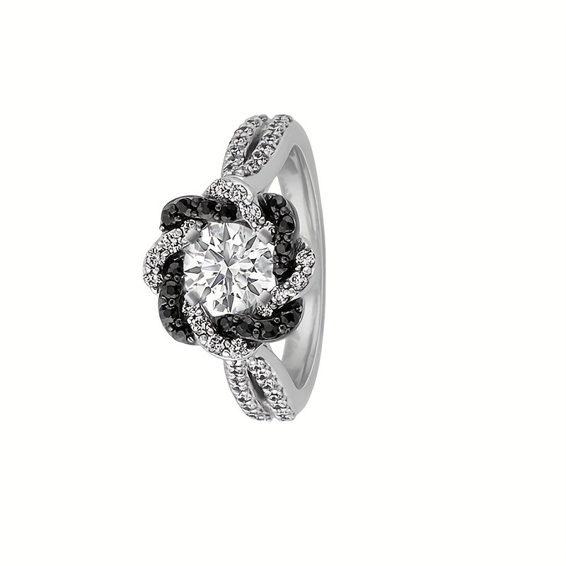 Add a touch of romance and mystery to your look with this stunning 14k plated ring featuring a dark flower design and sparkling zircon stones. Perfect for daily wear or special occasions.