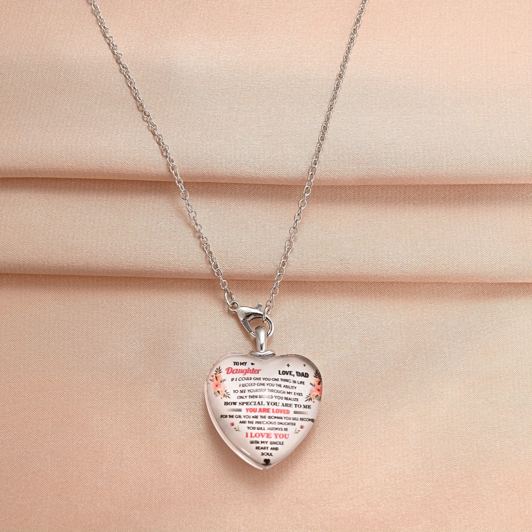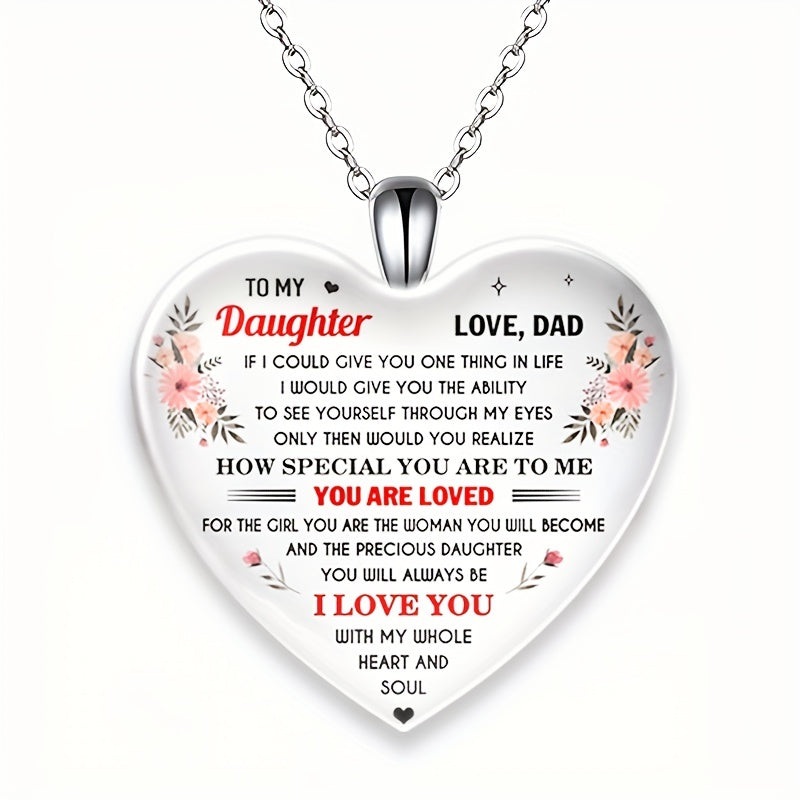 This beautiful pendant necklace features a heart-shaped crystal with a floral pattern. It makes a perfect gift for your daughter on Christmas, holidays, or birthdays.