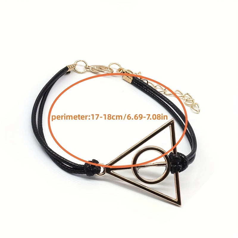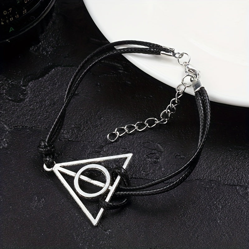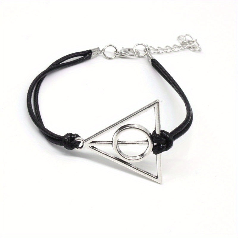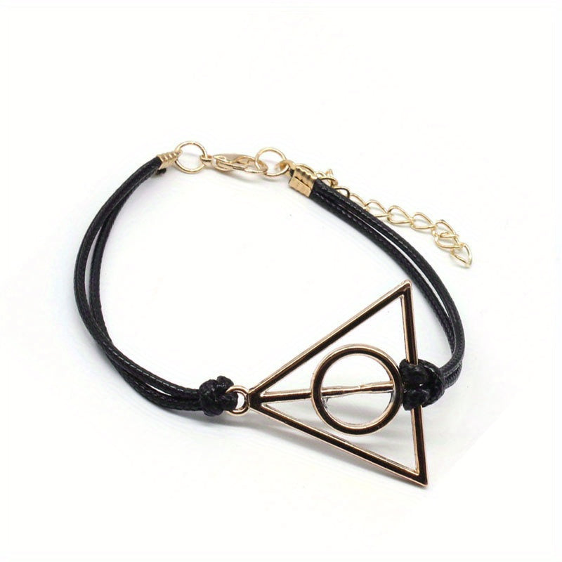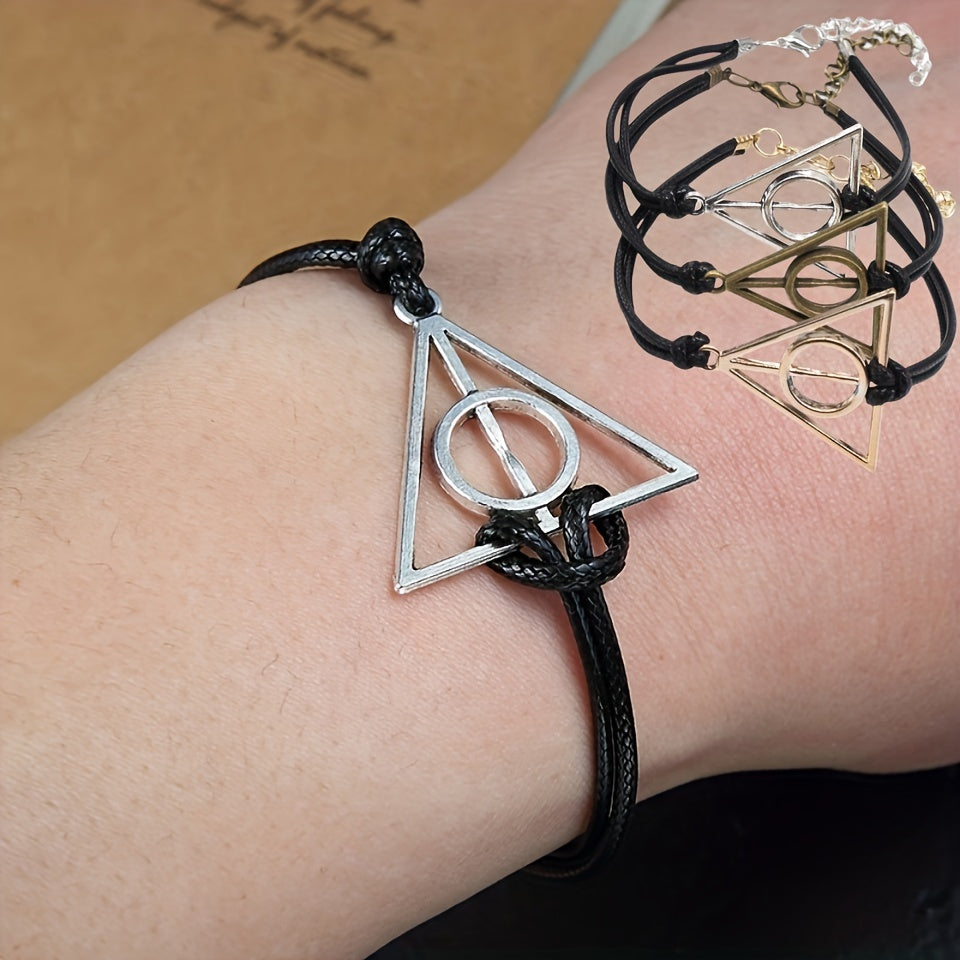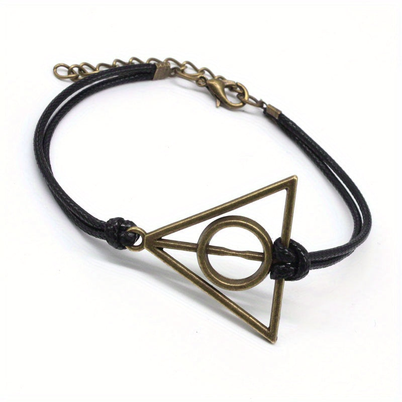 Add a touch of vintage charm with this unique deathly bracelet. It features a retro braided triangle design on leather rope, making it a stylish addition to any outfit.