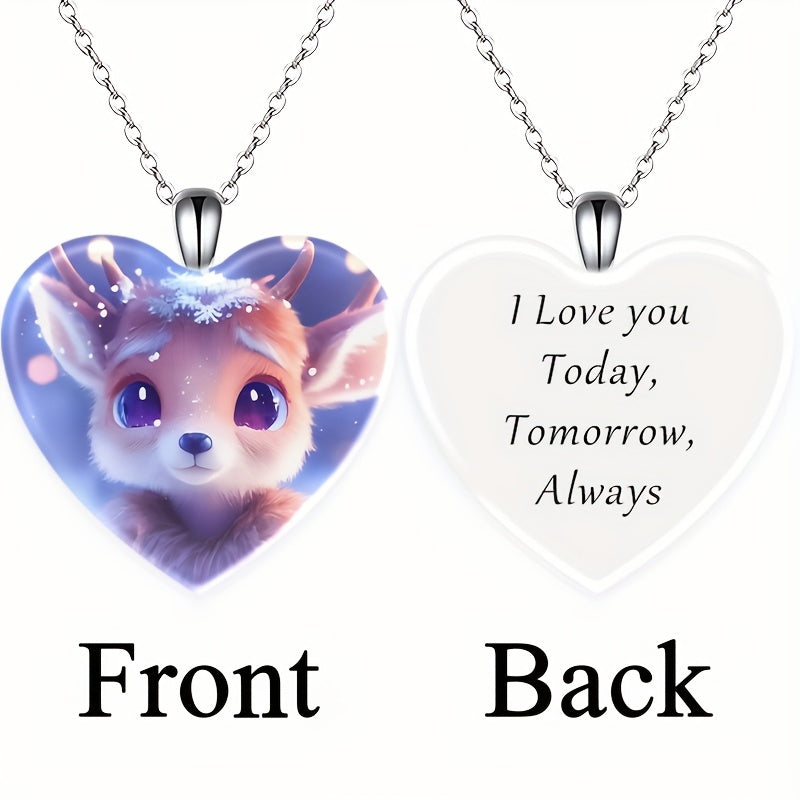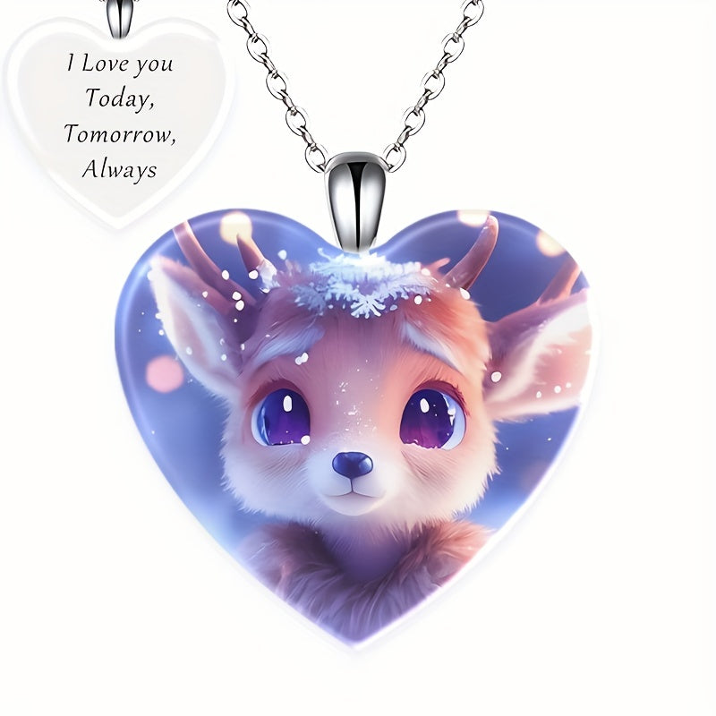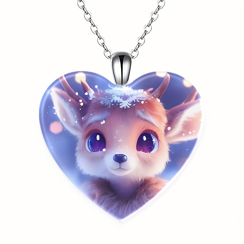 Add a touch of festive elegance with this deer heart pendant necklace, perfect for Christmas celebrations. The necklace features a charming deer design within a heart shape, making it a great accessory.