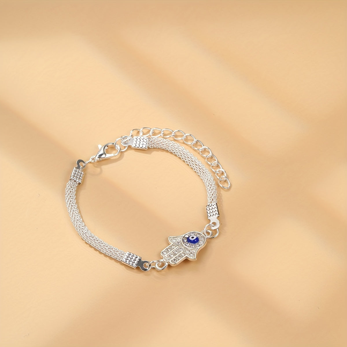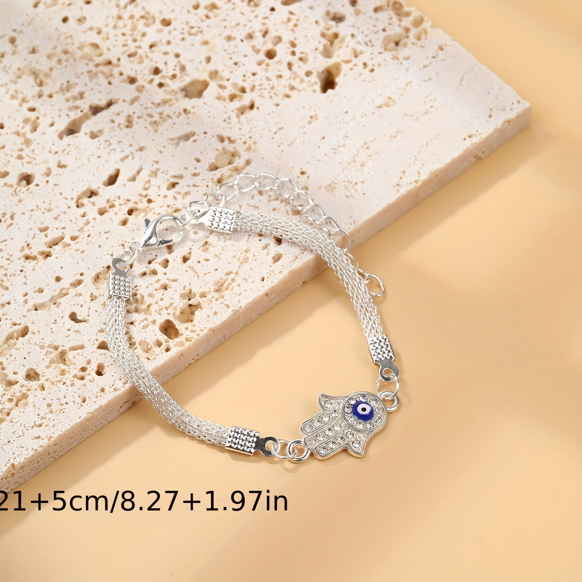 This anklet style ankle bracelet features a devil's eye hand shape design, perfect for daily wear. Made for women and girls who appreciate unique jewelry pieces.
