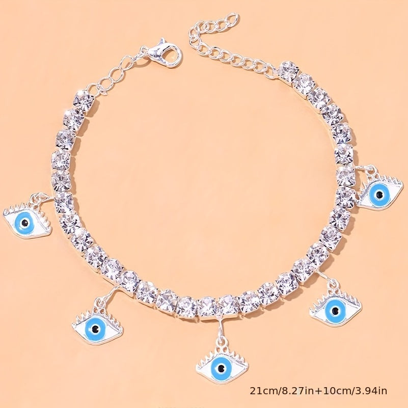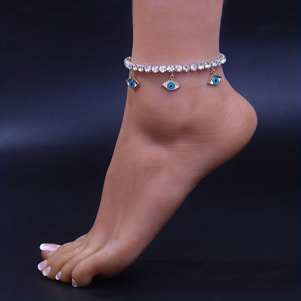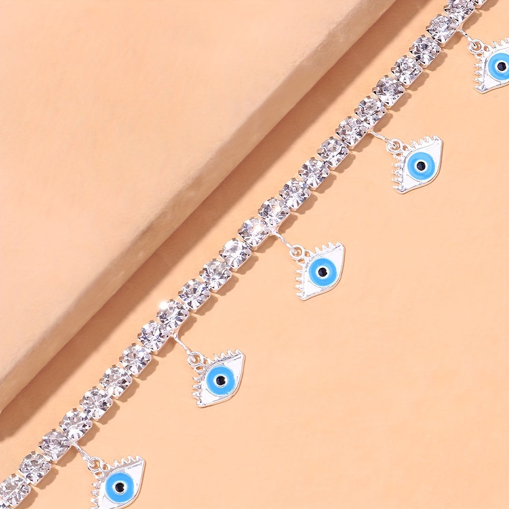 This anklet features a devil's eye shape tassel pendant with bling bling rhinestones chain, perfect for warding off bad luck. Ideal for weddings and photography props.
